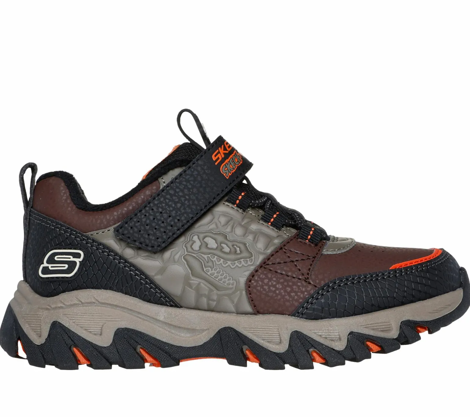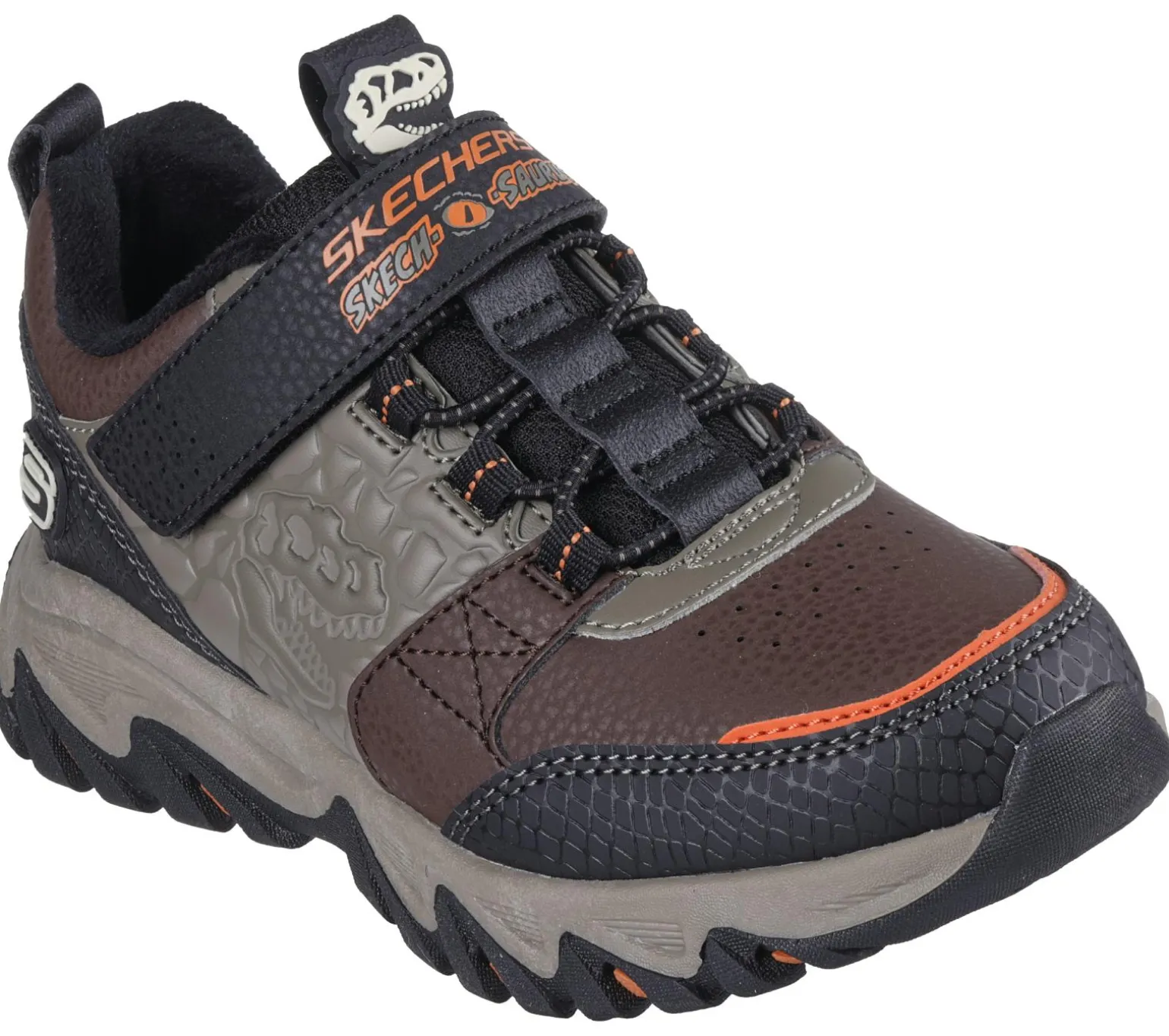 They’ll bring out their inner roaring reptile wearing Skechers Rugged Ranger – Dino-Relix. This ‘Skech-O-Saurus’ dinosaur-themed trail sneaker features a faux-leather and mesh upper with dino-embossed quarter panels, stretch laces, Skechers Adaptive Closure, and a cushioned comfort insole.