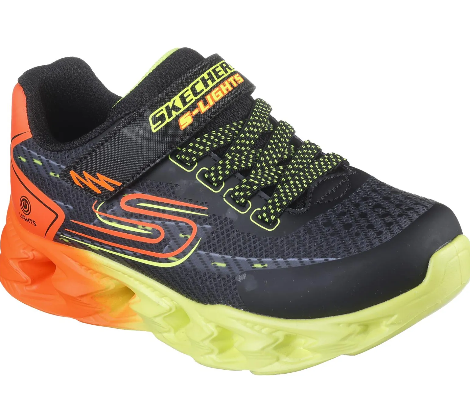 Illuminate your steps and play all day in Skechers S-Lights®: Vortex 2.0 – Quantroid. This lighted design features a mesh and synthetic upper with stretch laces, instep strap, Skechers Adaptive Closure for a customized fit and a cushioned comfort insole.
