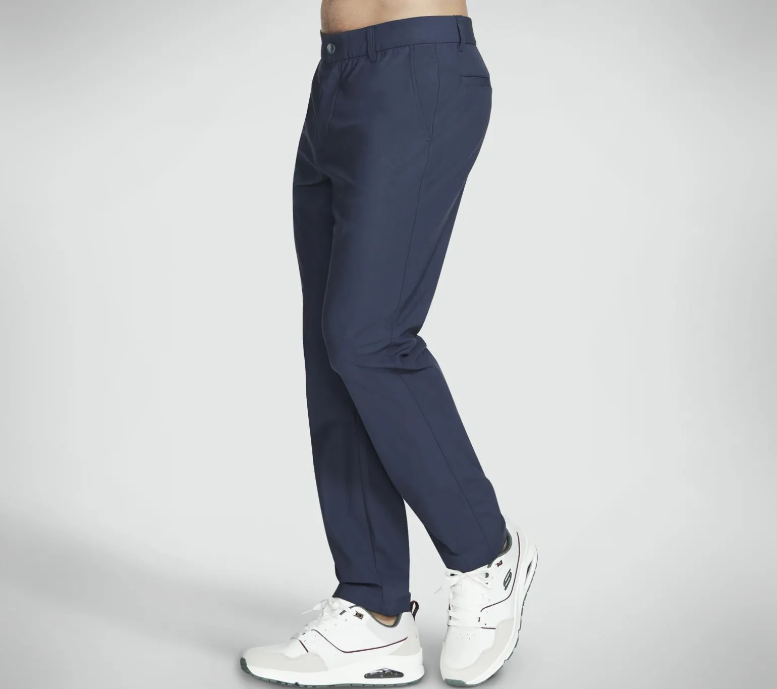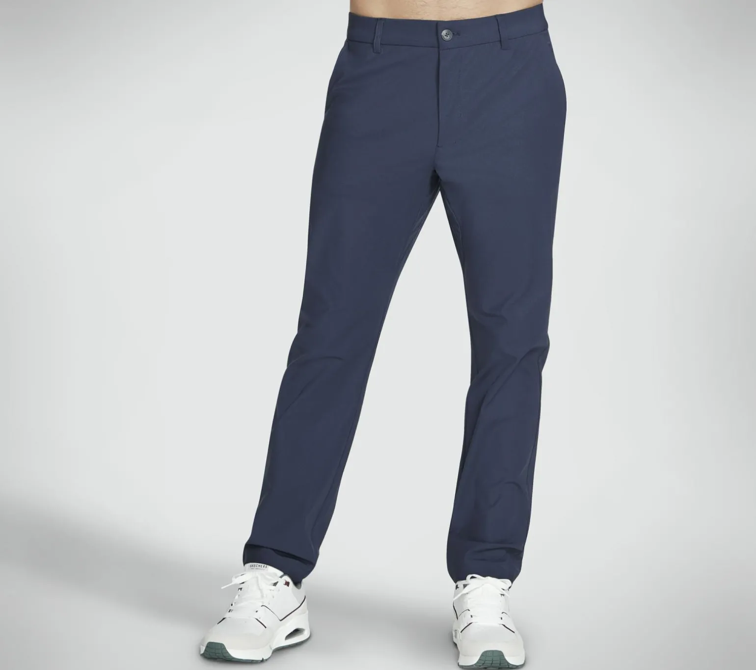 Elevate your look with easy-wearing comfort and versatile style wearing Skechers Skech-Knits Everywhere Pant. This relaxed fit everyday style features a breathable SKECHWEAVE fabric, zip fly with button closure, belt loops, elasticated waistband, front slash pockets, and dual back pockets.