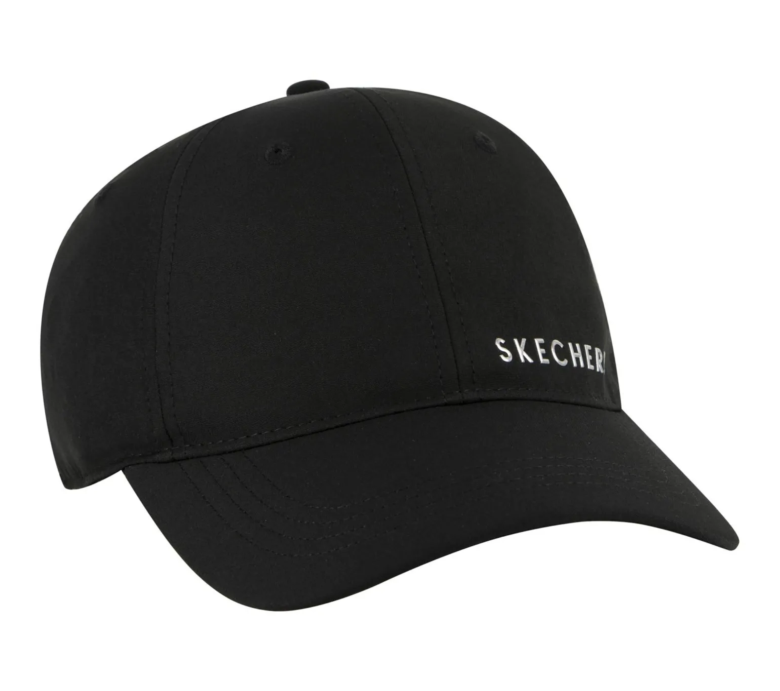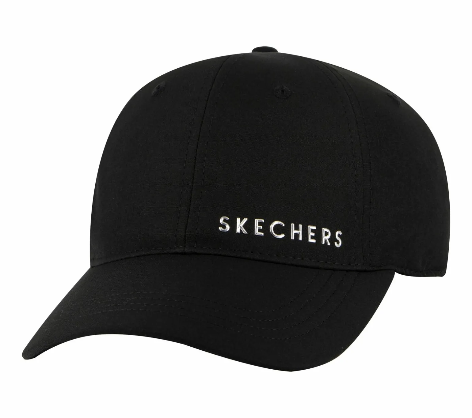 Get a versatile sporty look in Skech-Shine Foil Baseball Hat. Featuring a woven fabric with stitching accents, adjustable back closure and logo detailing.