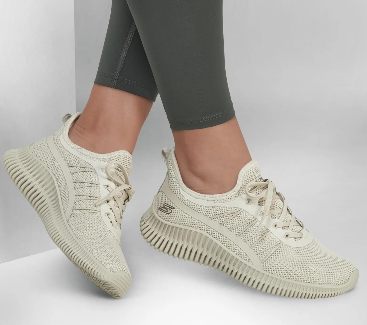 Sleek sporty style and flexible comfort meet in Skechers BOBS Sport Geo – New Aesthetics. This slip-on sneaker features an engineered knit and synthetic upper with adjustable laces and a cushioned Skechers Memory Foam insole. For every BOBS purchase, a donation is made to animals in need.