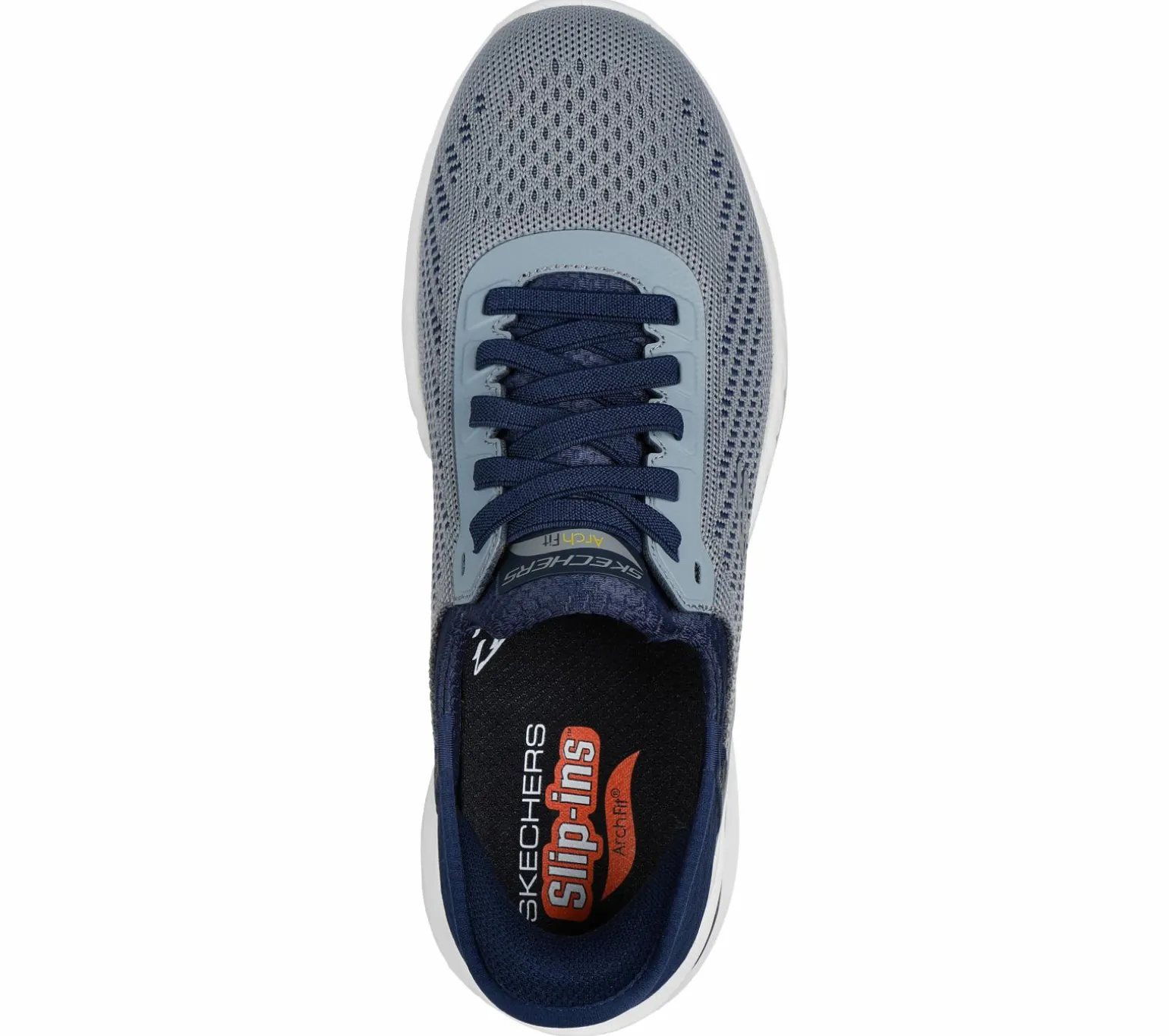 Easy-wearing convenience pairs with roomy support in Skechers Relaxed Fit®: Arch Fit® Orvan – Drex. Designed with our exclusive Heel Pillow, this stream-lined slip-on features a knitted mesh upper with stretch laces, an air-cooled ergonomic midsole, and removable Arch Fit® insole support.