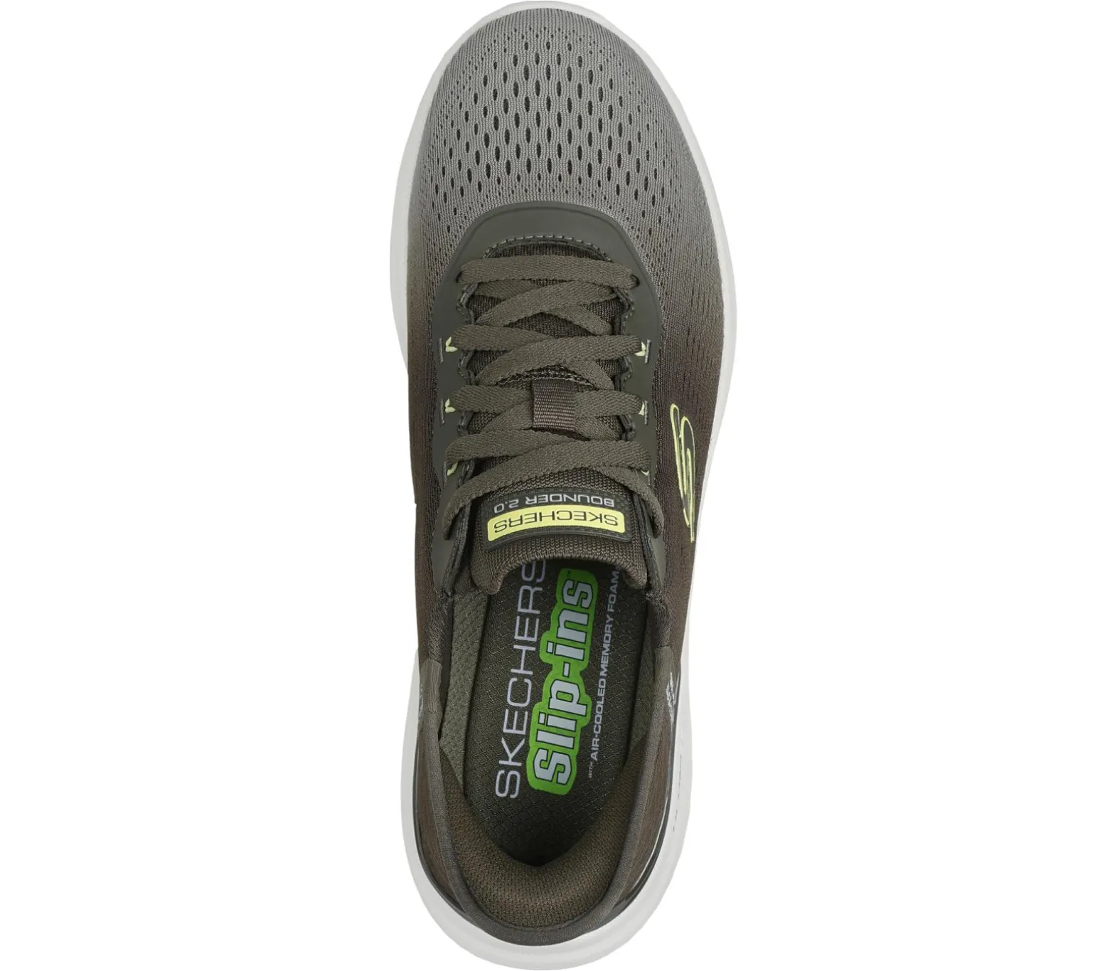 Step out with ease and comfort wearing Skechers Hands Free Slip-ins®: Bounder 2.0 – Tellem. Designed with our exclusive Heel Pillow, this lace-up vegan sneaker features an ombre engineered mesh upper and a Skechers Air-Cooled Memory Foam® insole.