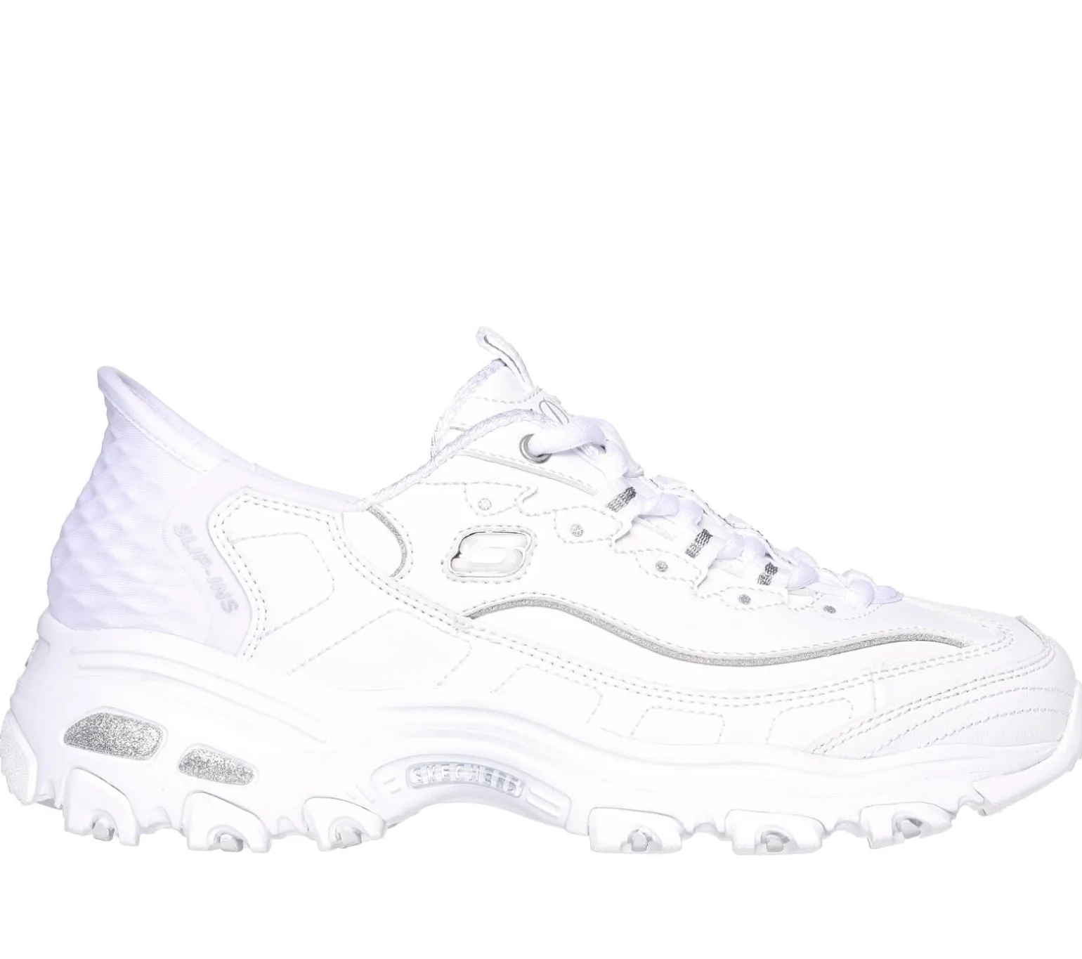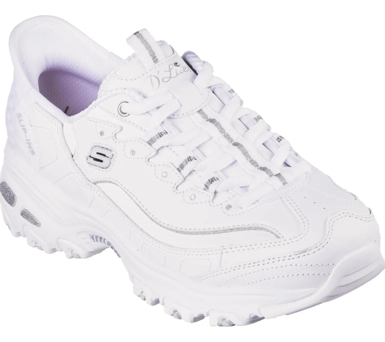 Experience iconic Skechers style with modern convenience wearing Skechers Hands Free Slip-ins®: D’Lites – New Scene. Along with a molded Skechers Slip-ins® heel panel, this sporty fashion sneaker features our exclusive Heel Pillow, a lace-up leather and mesh upper, plus a Skechers Air-Cooled Memory Foam® insole.