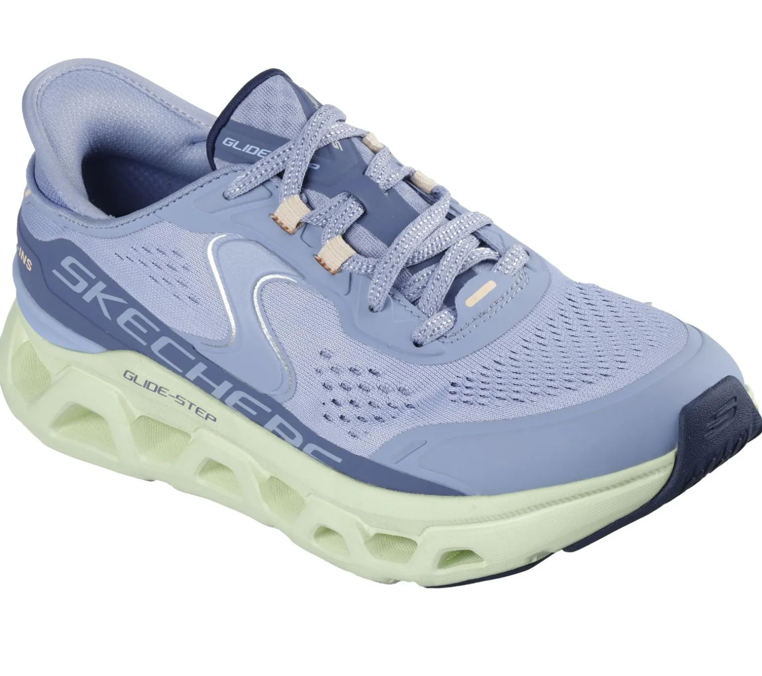 Break the mold in easy-wearing cushioned comfort wearing Skechers Hands Free Slip-ins®: Glide-Step® Altus. Designed with our exclusive Heel Pillow, this sporty slip-on vegan style features a Stretch Fit® engineered mesh upper with adjustable laces, a Skechers Air-Cooled Memory Foam® comfort insole, and a Glide-Step® geometric cushioned midsole.