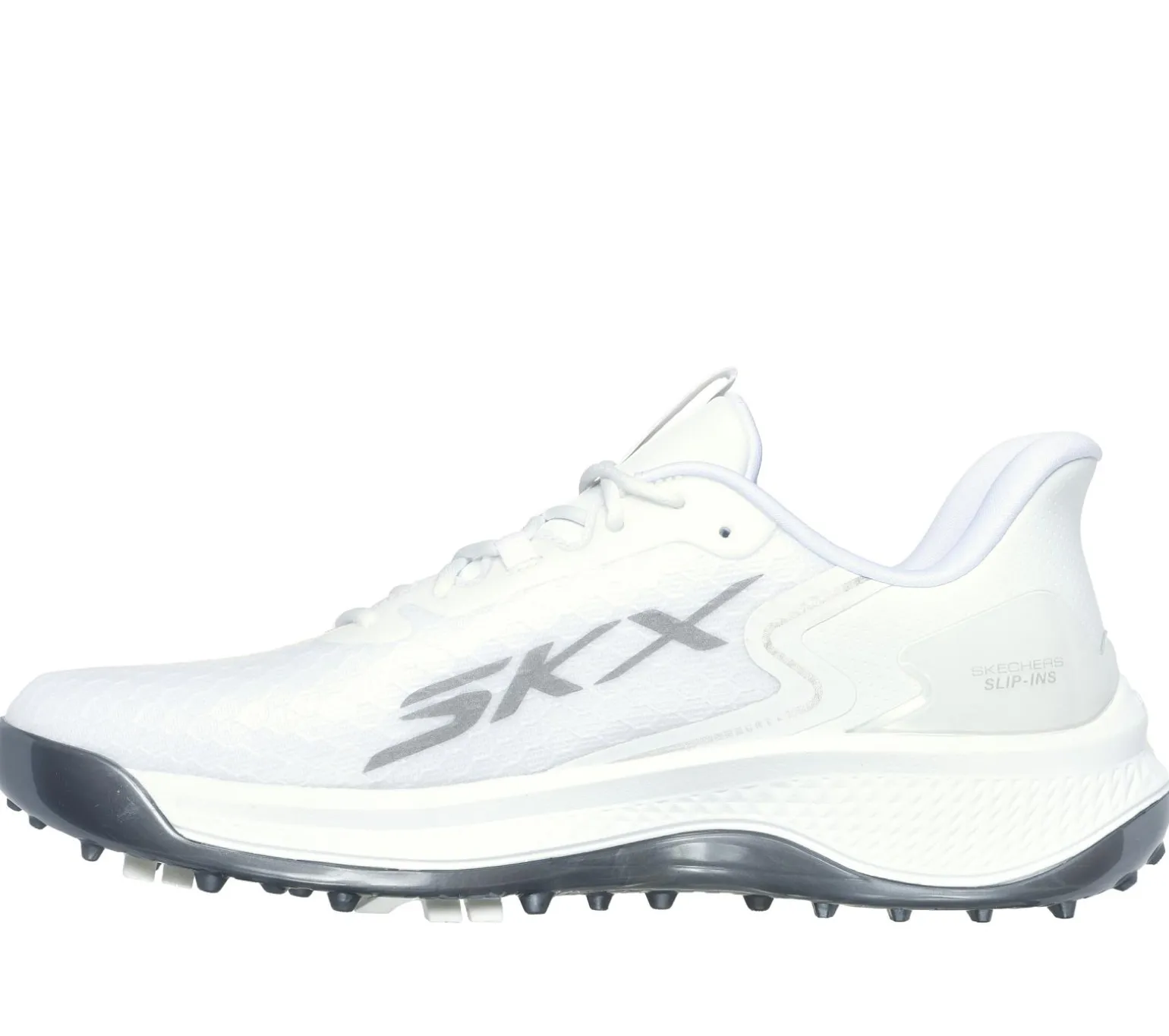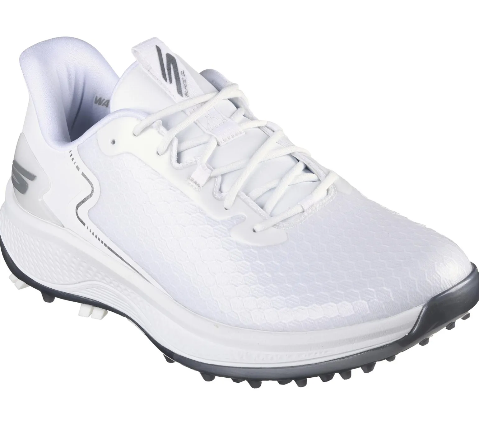 Handle the course with the best in comfort technologies wearing Skechers Slip-ins®: GO GOLF® Blade GF – Slip-ins. Designed with our exclusive Heel Pillow, this waterproof golf shoe features a synthetic upper with front laces, a lightweight Resamax® insole, ECO FLIGHT cushioning, and a GRIPFLEX spikeless outsole for enhanced traction.
