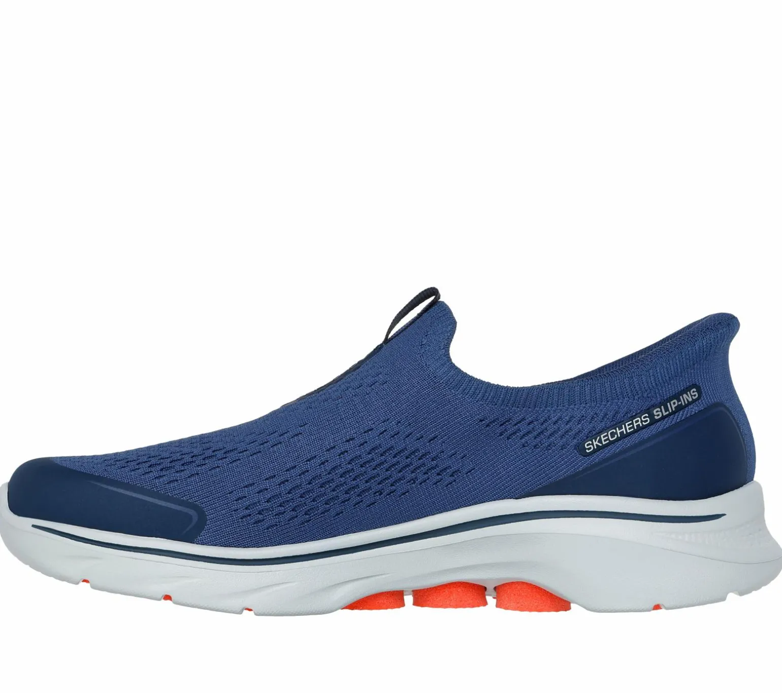 Step-in to convenient walking comfort and cushioning wearing Skechers Hands Free Slip-ins®: GO WALK 7 – Easy On Evolution. Designed with our exclusive Heel Pillow, this laceless style features a Stretch Fit® engineered knit and synthetic upper, a Skechers Air-Cooled Memory Foam® insole, lightweight ULTRA GO® cushioning, and high-rebound Hyper Pillar Technology for added support.