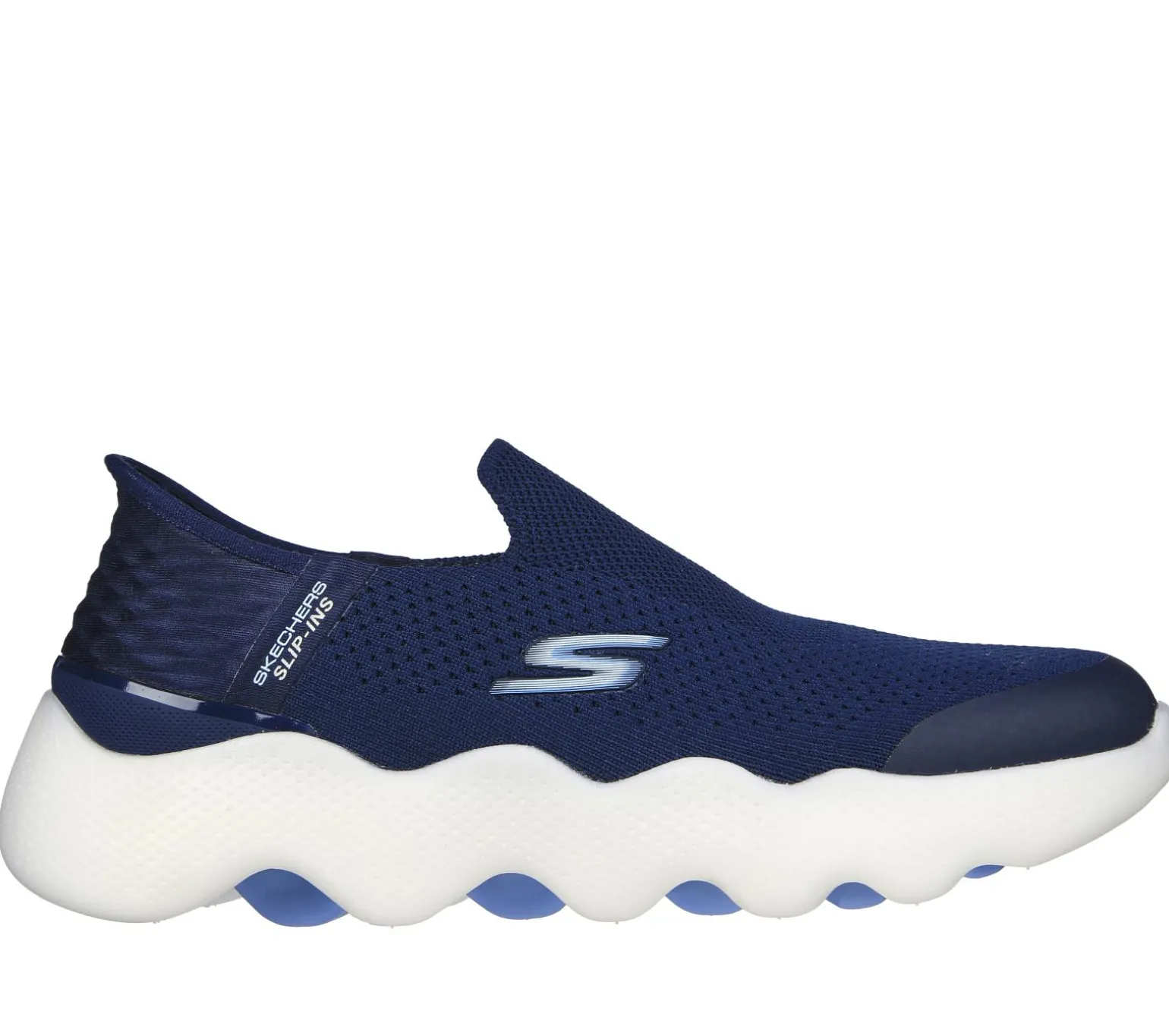 Enhance your daily walks with the best in comfort technologies wearing Skechers Hands Free Slip-ins® GO WALK® Massage Fit® – Fashion Icon. Designed with our exclusive Heel Pillow, this innovative hands-free slip-on features an engineered mesh and synthetic hotmelt upper with laced front, ultra-lightweight HYPER BURST® cushioning, and a unique midsole design that gently massages your feet with every step.