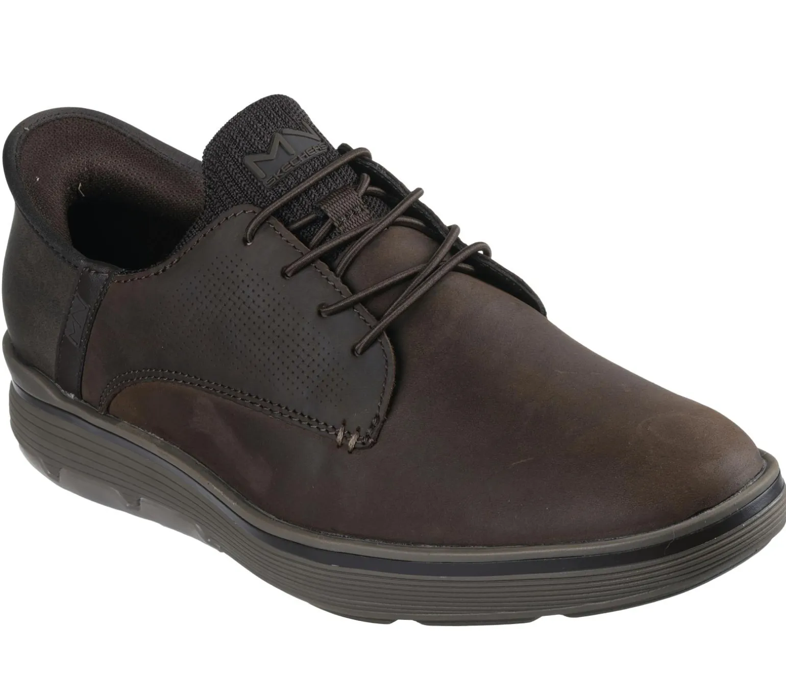 Dress the part and maximize your efficiency with Skechers Hands Free Slip-ins® Mark Nason® Skechers: Casual Glide Cell – Gable Lux. Designed with our exclusive Heel Pillow, this TOUCHLESS FIT® oxford dress style features a premium smooth leather upper with a hands-free molded heel panel, oxford lace front, translucent outsole detail, and a Memory Foam Lux insole.