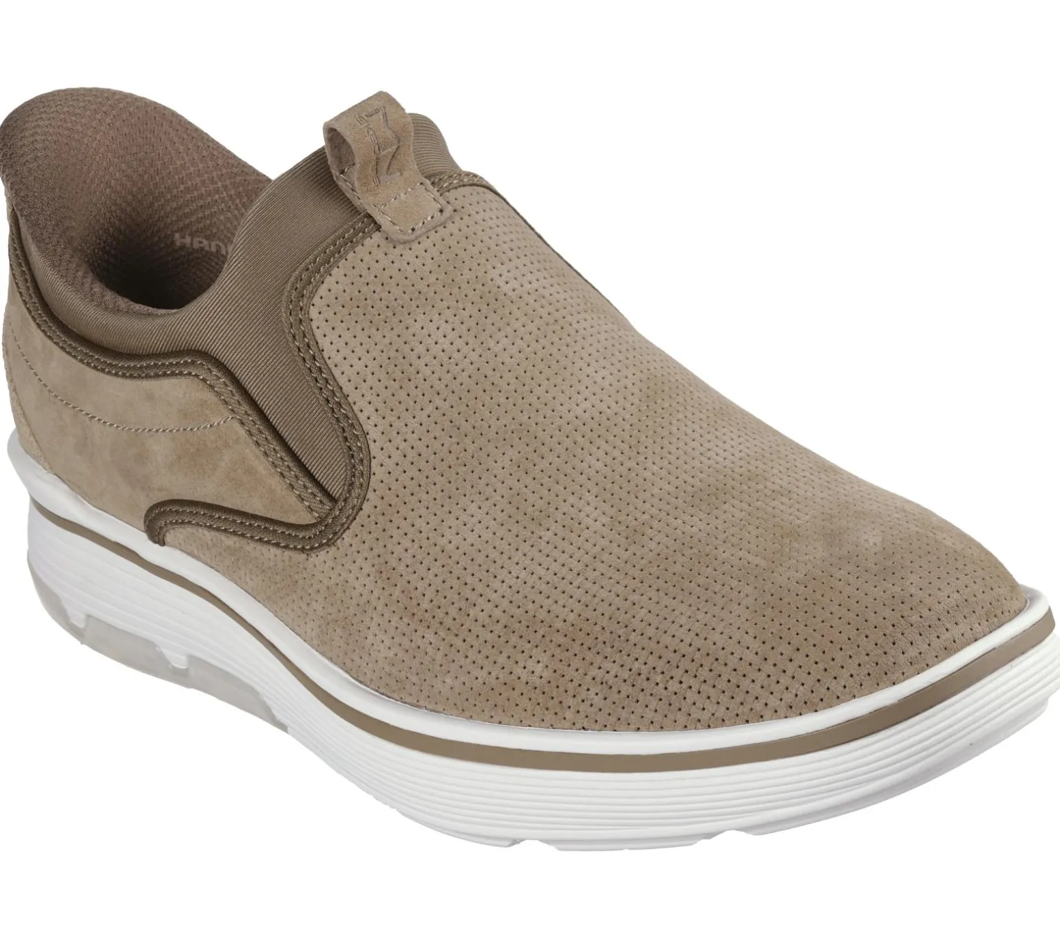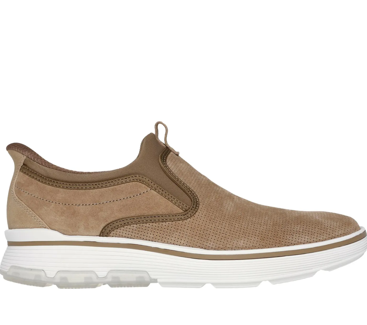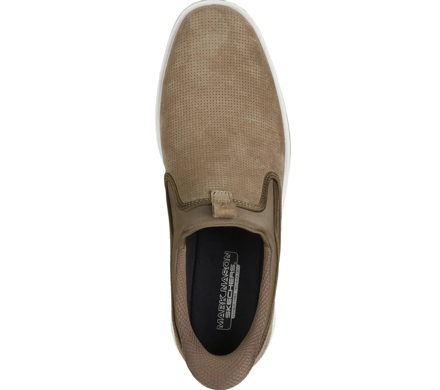 Step into effortless comfort and cool style with Skechers Hands Free Slip-ins® Mark Nason® Skechers: Casual Glide Cell – Baker. Designed with our exclusive Heel Pillow, this laceless slip-on features a suede upper with textile collar, a woven-look embossed vamp, and a cushioned Memory Foam Lux insole.
