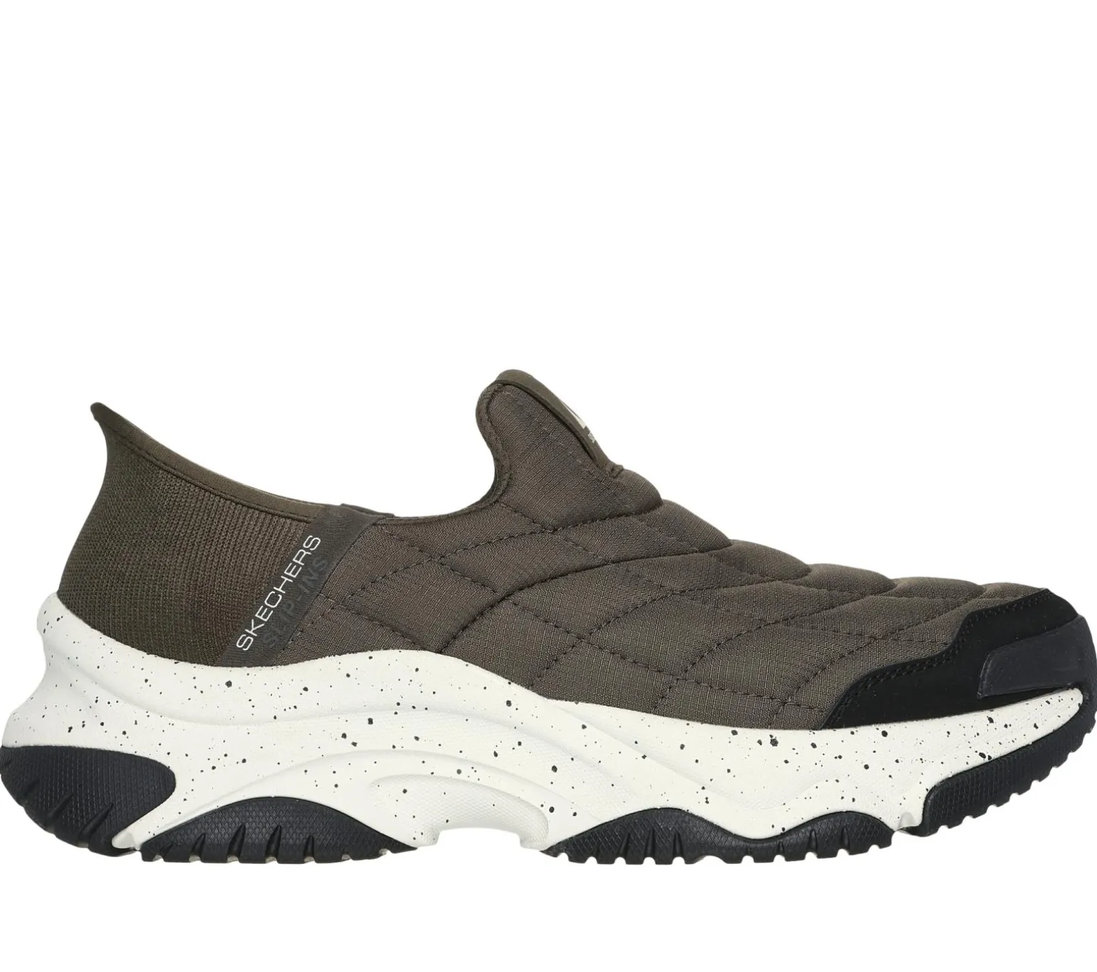 Just Step In and stroll about in cool, casual style wearing Skechers Hands Free Slip-ins®: Moonhiker – Nomad. Designed with our exclusive Heel Pillow, this laceless fashion sneaker features a quilted mesh upper with a Skechers Air-Cooled Memory Foam® insole and well-cushioned speckled midsole.