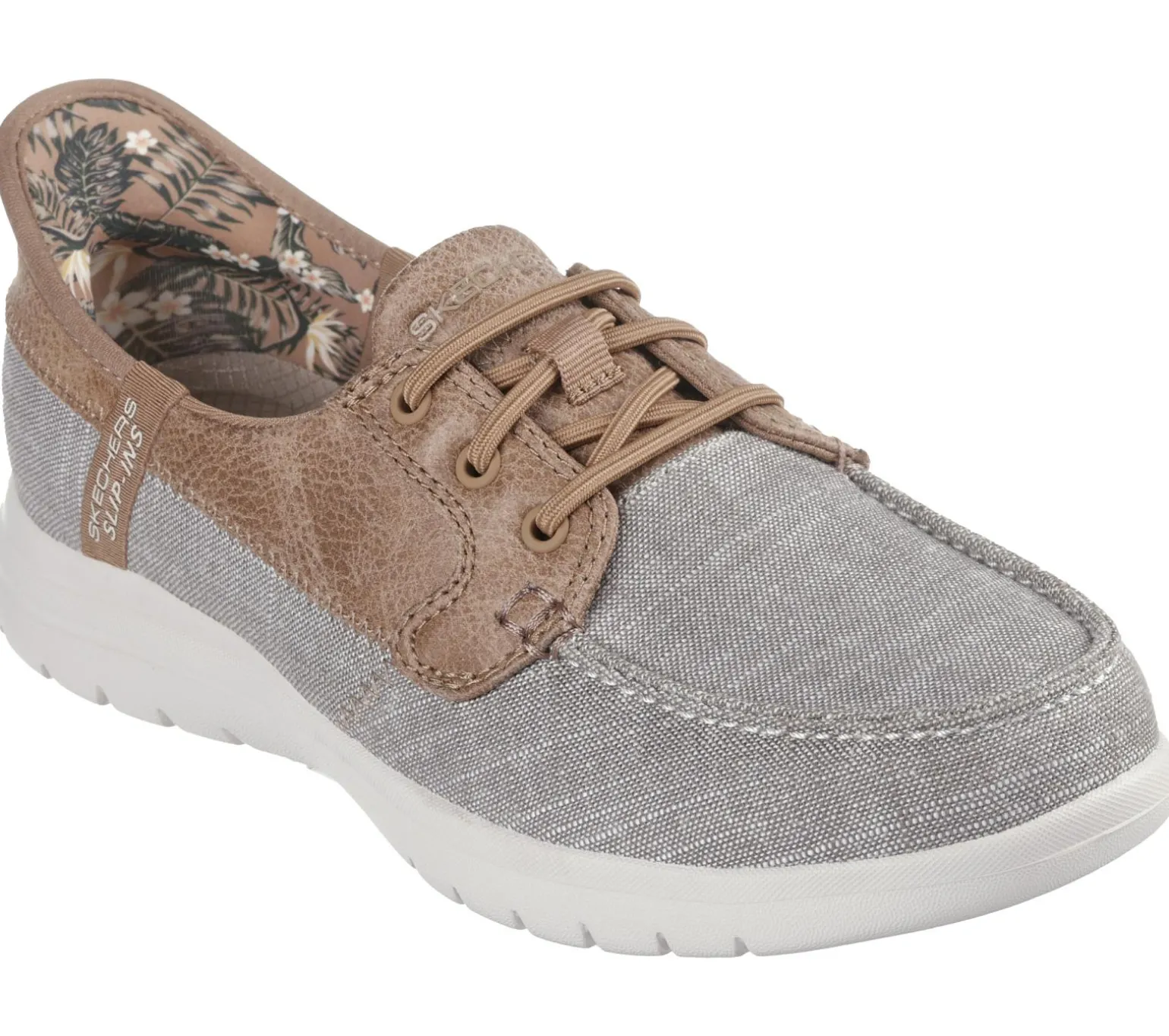 Breezy style and easygoing comfort combine in Skechers Hands Free Slip-ins®: On-the-GO Flex – Coastal Sky. This boater inspired style is designed with our exclusive Heel Pillow and features a linen-blend upper with synthetic trim, stretch laces, a Skechers Air-Cooled Memory Foam® insole, and ULTRA GO® cushioning for all-day comfort.