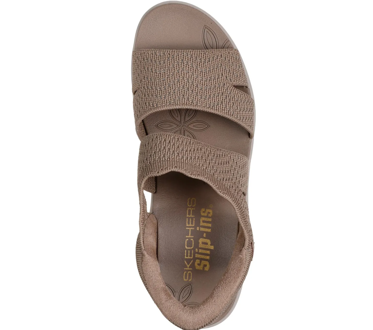Enjoy sunny days in breezy comfort with Skechers Hands Free Slip-ins®: Pier-Lite – Slip On By. Designed with our Exclusive Heel Pillow, this strappy sandal features a knitted strap upper with scalloped trim and a cushioned footbed.