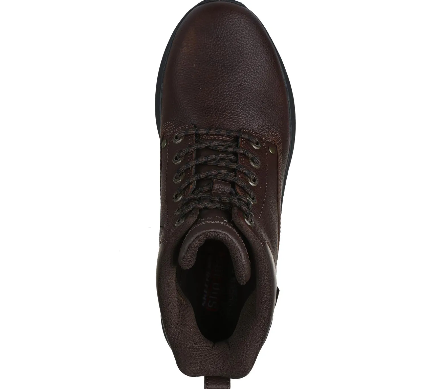 Embrace the elements in effortless comfort with Skechers Hands Free Slip-ins® Relaxed Fit®: Pollard – Waylon. Designed with our exclusive Heel Pillow, this laced slip-on outdoor boot features a leather and synthetic upper with a cushioned charcoal-infused Skechers Air-Cooled Memory Foam® insole, and Goodyear® Rubber Outsole.