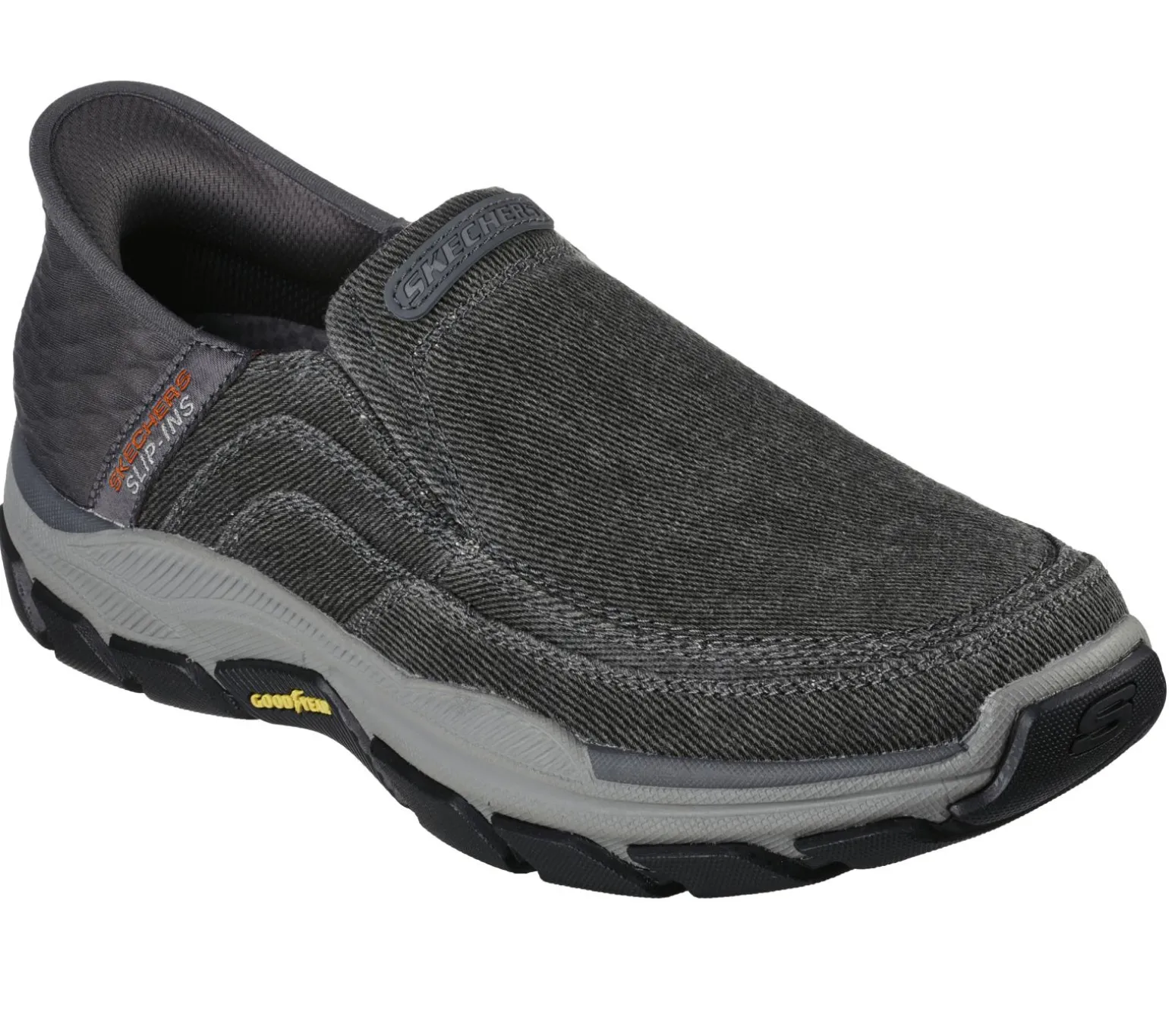 Simply step in and go wearing Skechers Hands Free Slip-ins® Relaxed Fit®: Respected – Holmgren. Designed with our exclusive Heel Pillow, this laceless style also features a canvas upper with twin gore panels for ease of wear, a Skechers Air-Cooled Memory Foam® comfort insole, Goga Mat Arch cushioning, and an anti-slip Goodyear® Rubber Outsole.