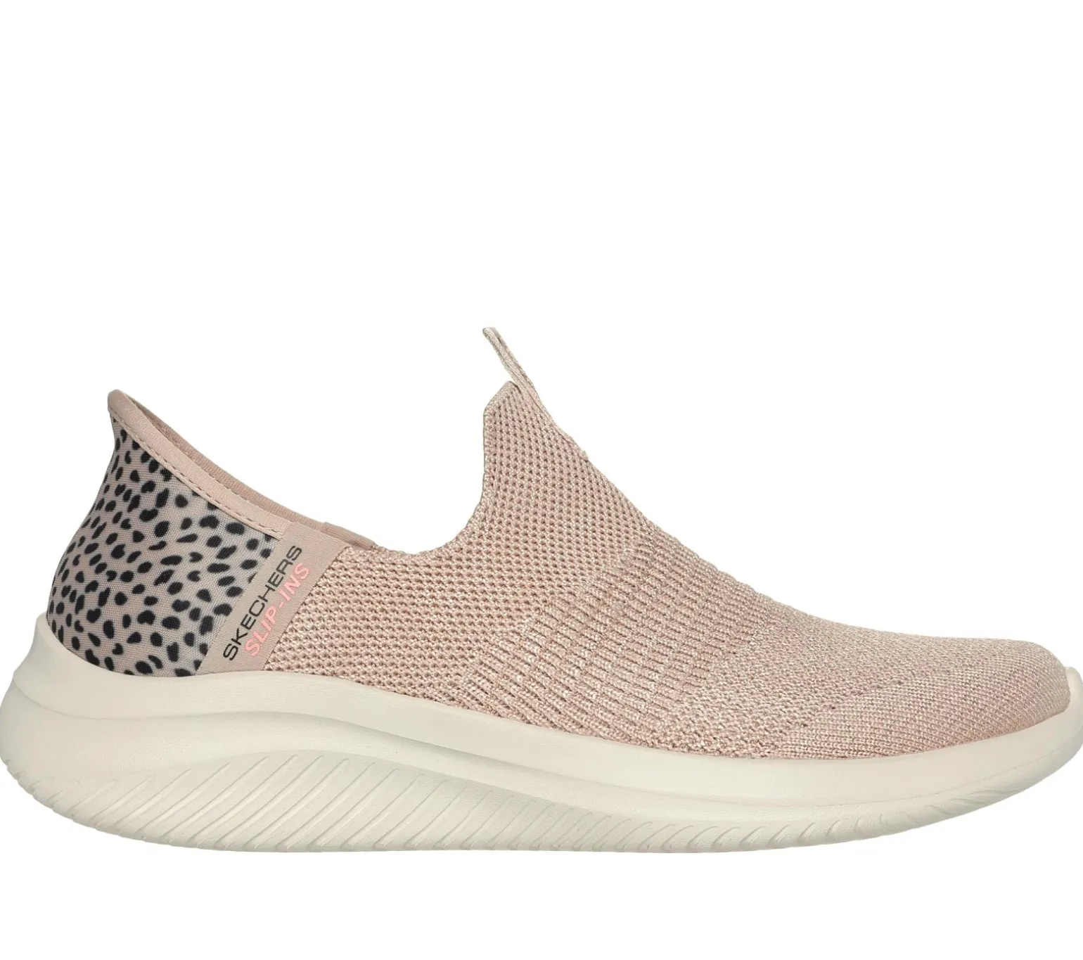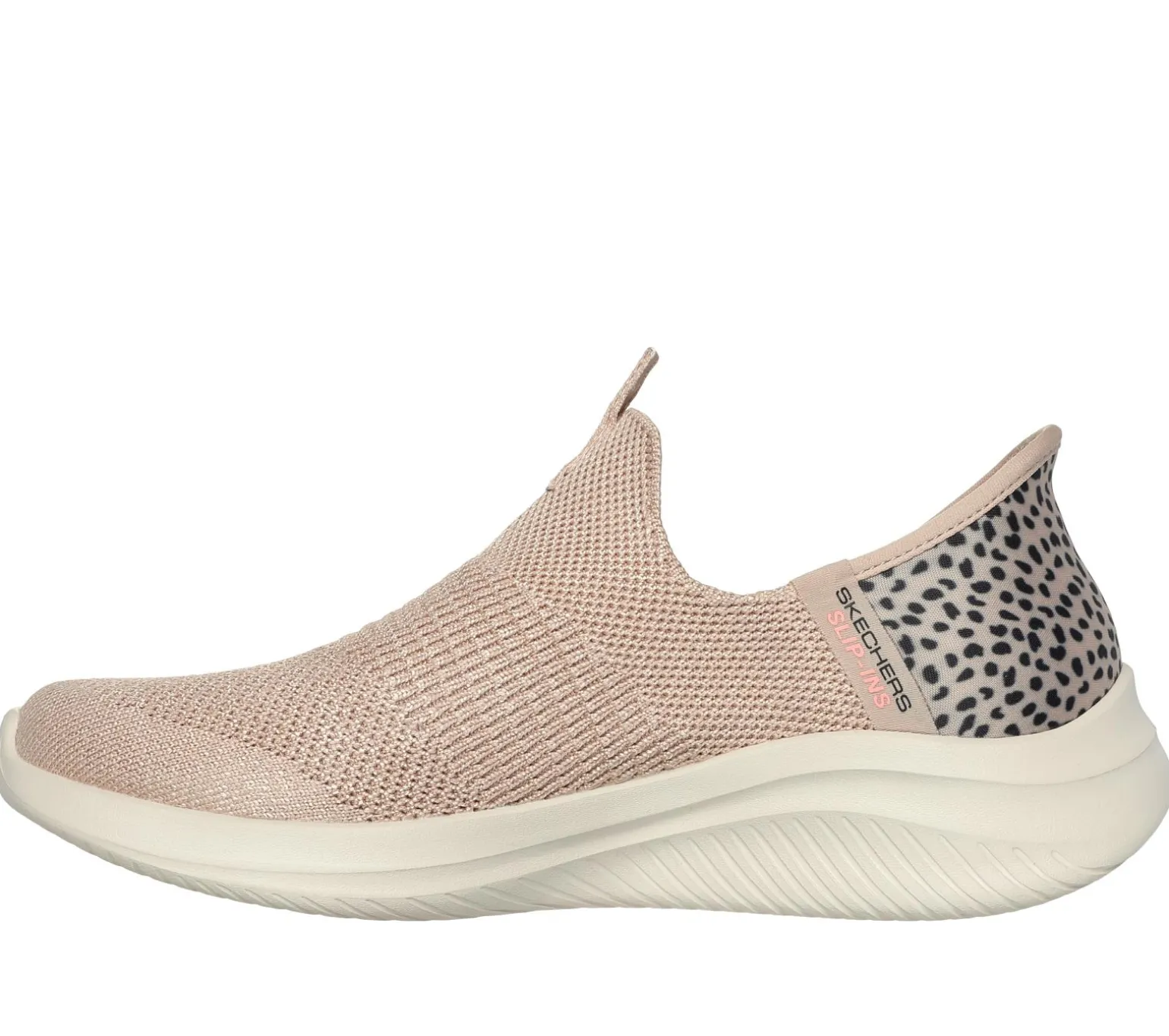 Be spotted in effortless comfort wearing Skechers Hands Free Slip-ins®: Ultra Flex 3.0 – New Energy. Designed with our exclusive Heel Pillow, this casual vegan style features a Skechers Hands Free Slip-ins® molded heel panel with cheetah print trim, an engineered knit Stretch Fit® upper and a cushioned Skechers Air-Cooled Memory Foam® insole.