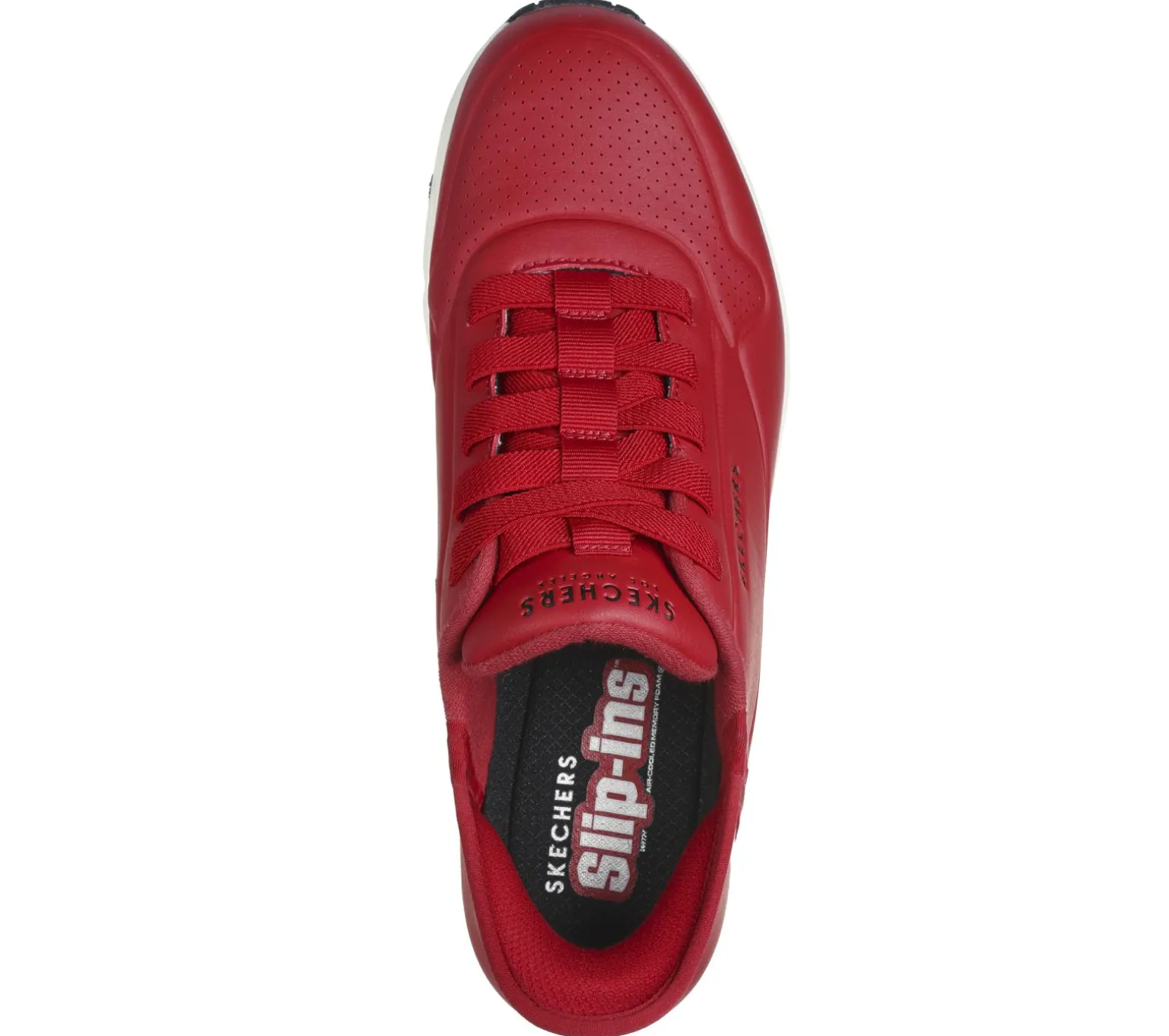 An iconic Skechers favorite is reimagined with effortless comfort in Skechers Street Hands Free Slip-ins®: Uno – Easy-Air. Designed with our exclusive Heel Pillow, this fashion sneaker features a synthetic duraleather upper with stretch laces, a cushioned Skechers Air-Cooled Memory Foam® insole, and a visible Skech-Air® airbag midsole.