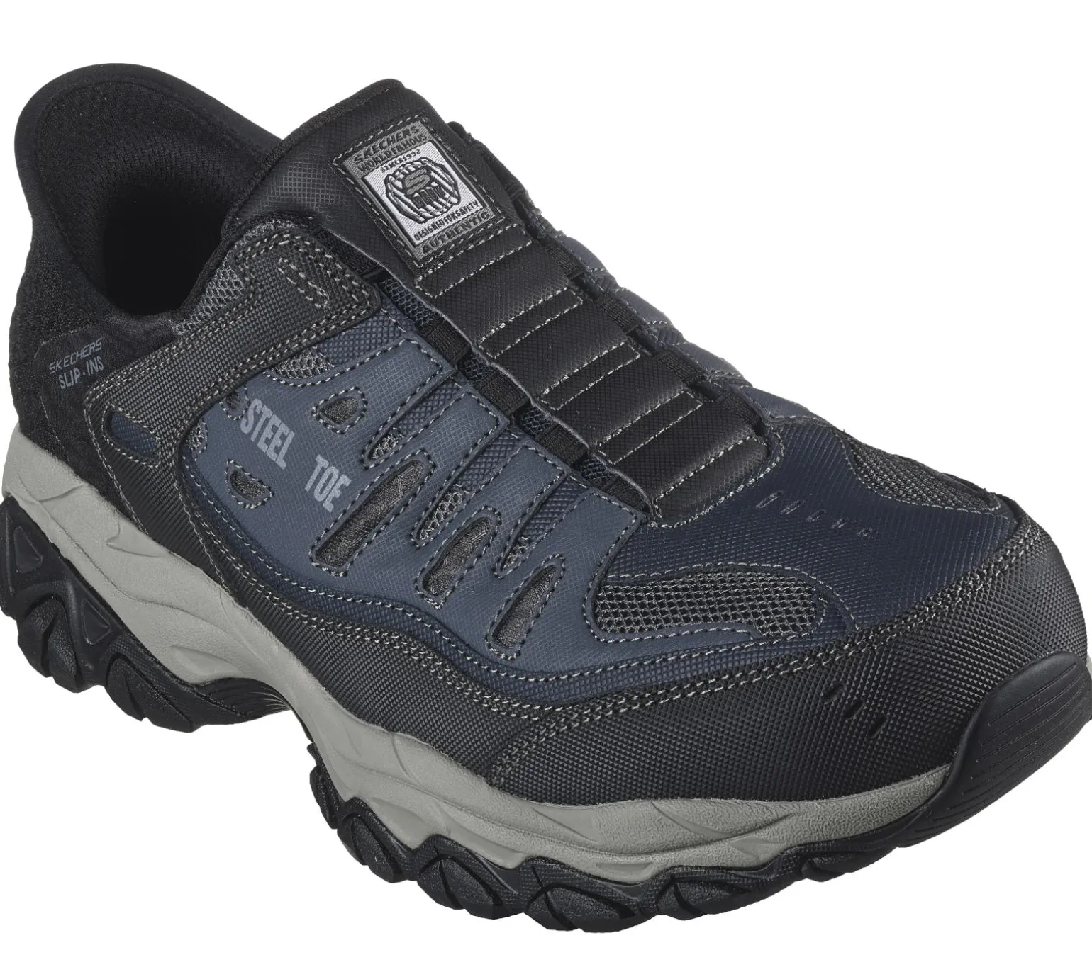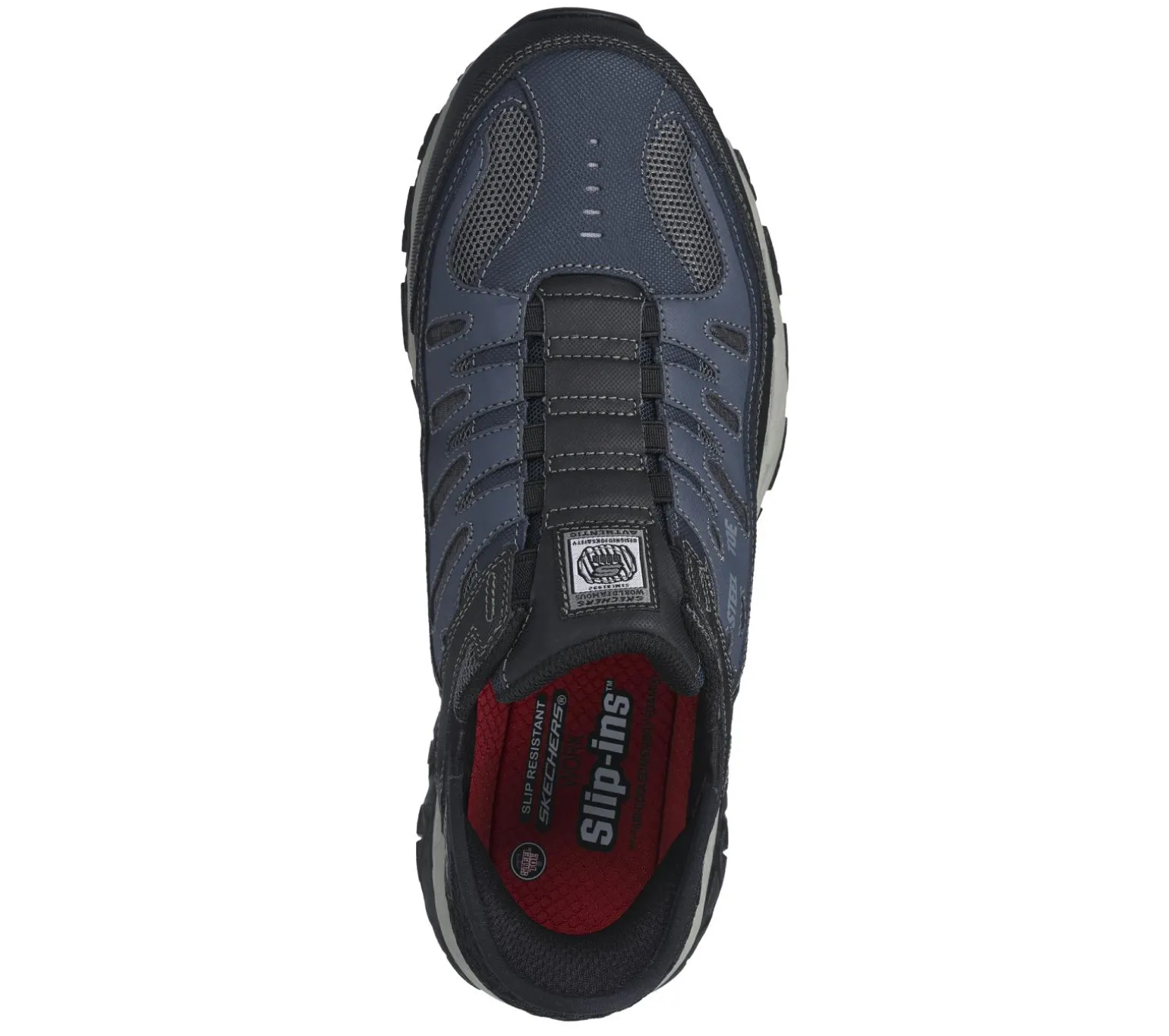 Take the easiest route to protection, comfort and style with Skechers Hands Free Slip-ins® Work: Cankton – Faison. This slip-on work design features a durable leather, synthetic and mesh upper with a unique Skechers Slip-ins® molded heel panel, an exclusive Heel Pillow, a steel safety toe, and a Skechers Air-Cooled Memory Foam® insole.
