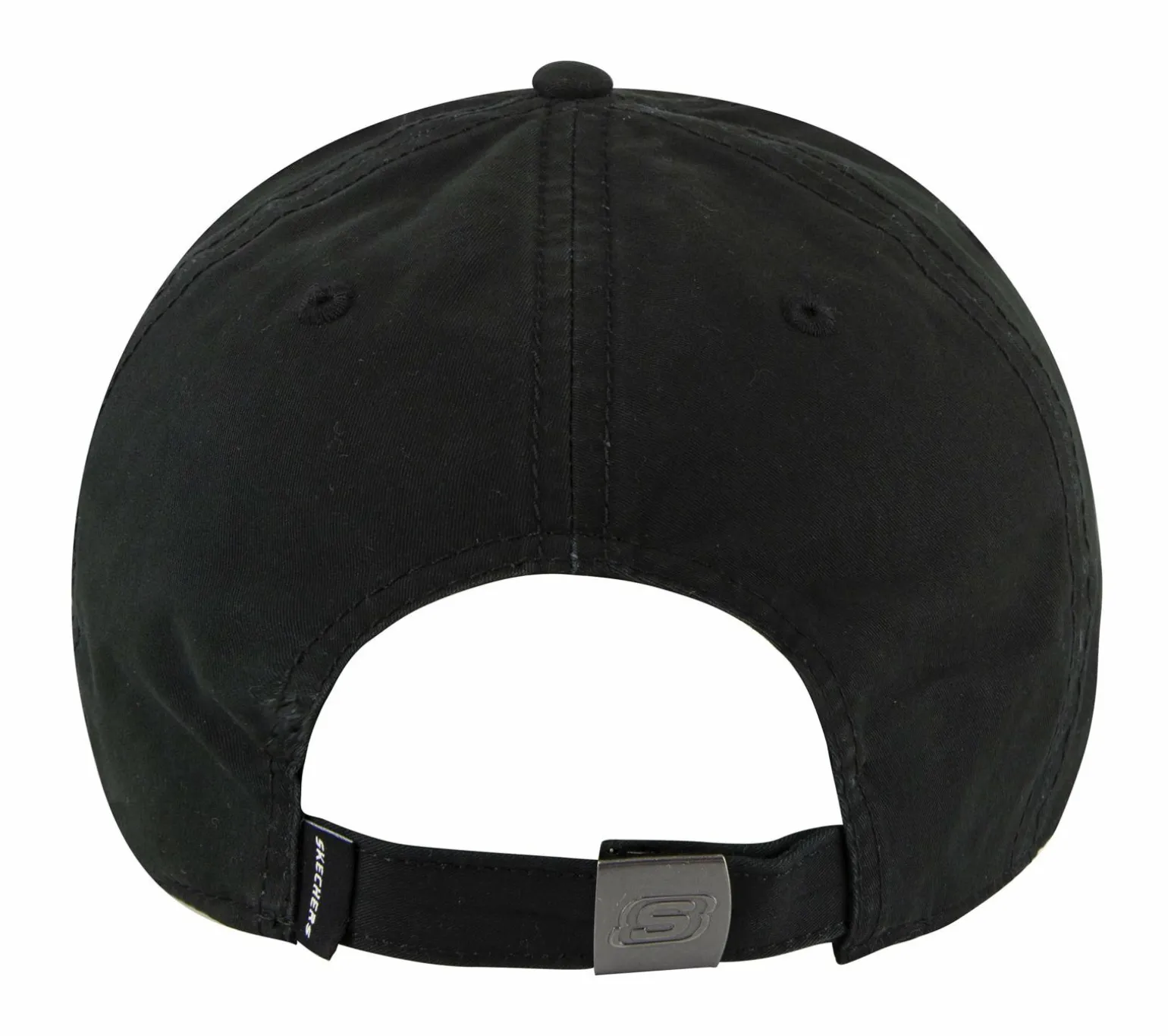 Crown yourself in faded glory with the Skechers Washed Dad Hat. Soft woven chambray-look fabric in an adjustable sporty baseball cap design with textured Skechers logo detailing.