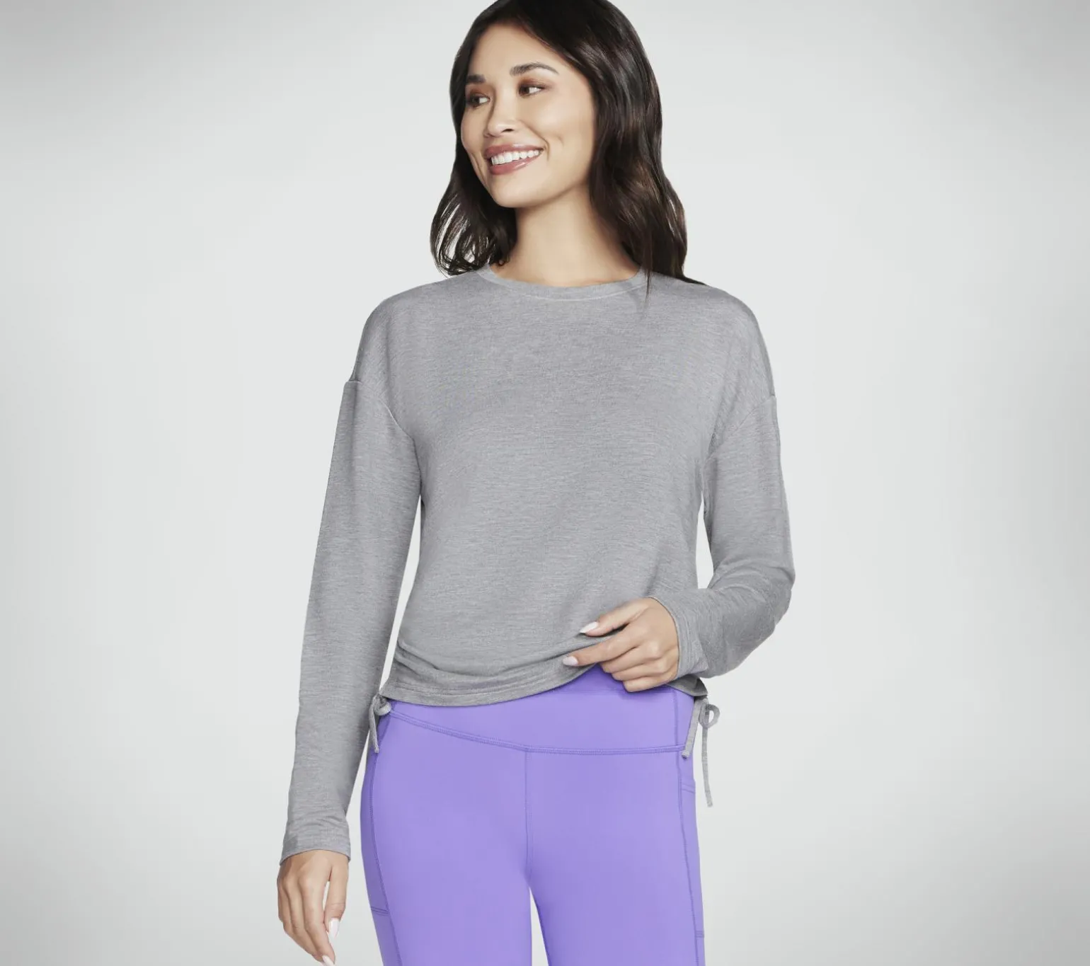 Redefine relaxed style and comfort with Skechers Skechluxe Renew Crew. This stylish crew neck top features our Skechluxe soft and silky fabric, long sleeves, and ruched sides with adjustable self ties.