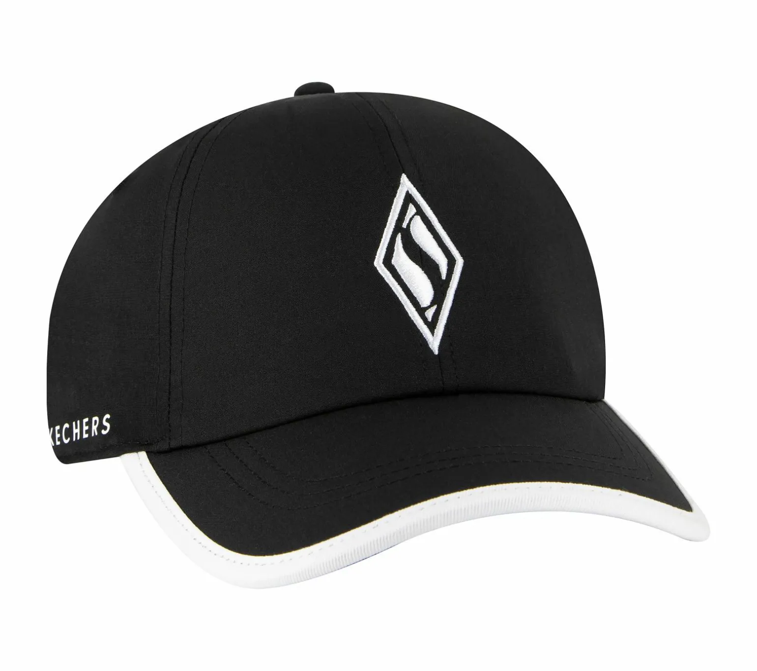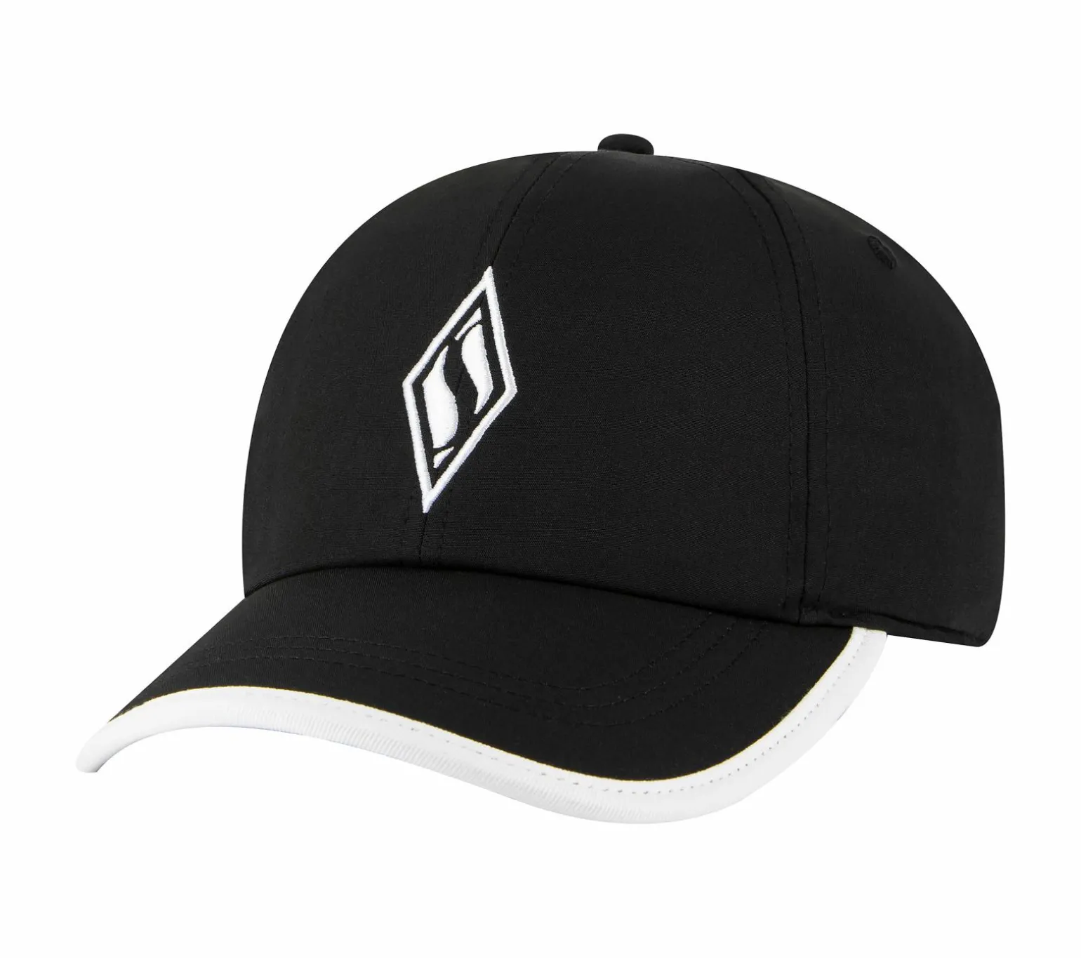 Get a sportier look with the Skechweave Diamond Colorblock Hat. Soft woven lightweight fabric in an adjustable sporty baseball cap with diamond logo embroidery and colorblock brim detail.