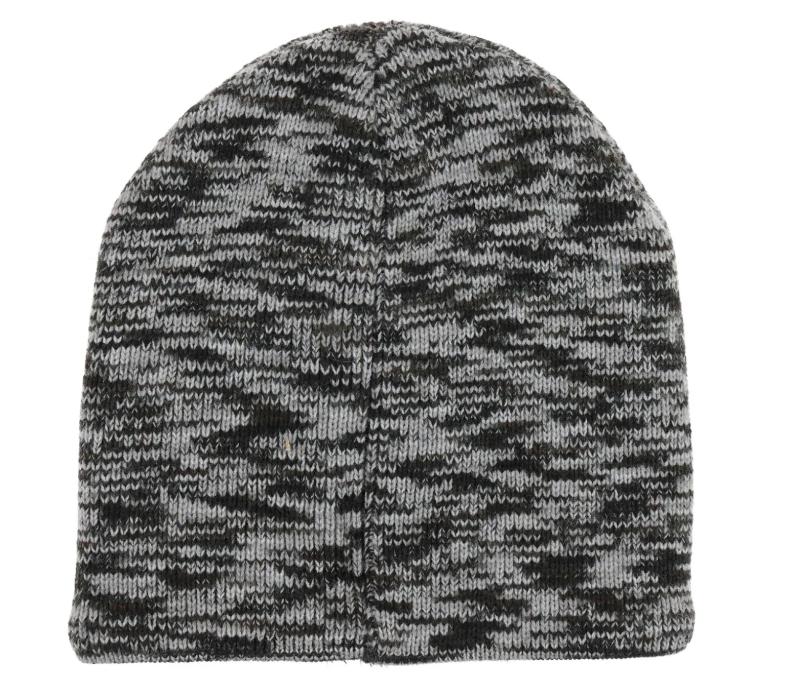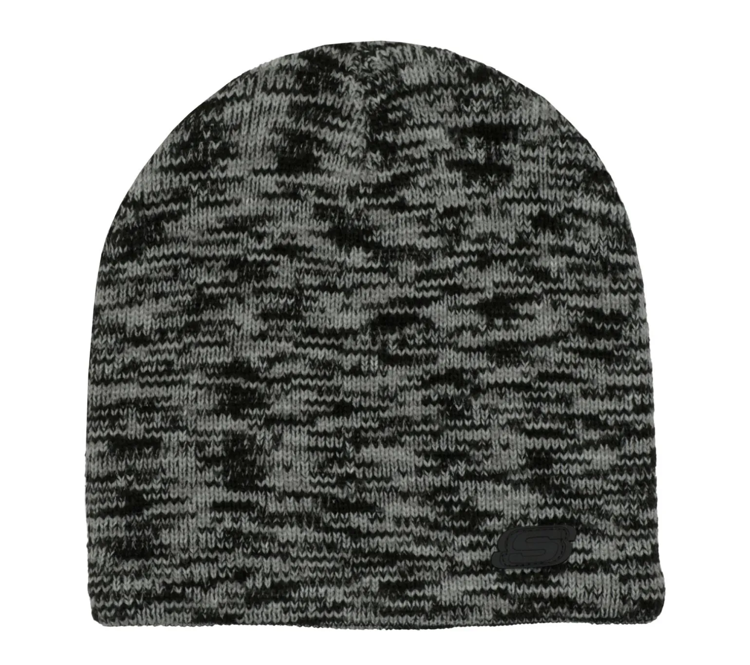 Keep the cold out and the no-fuss style in wearing Skechers Spacedye Beanie. This gray and black knit winter hat features a rubber Skechers logo.