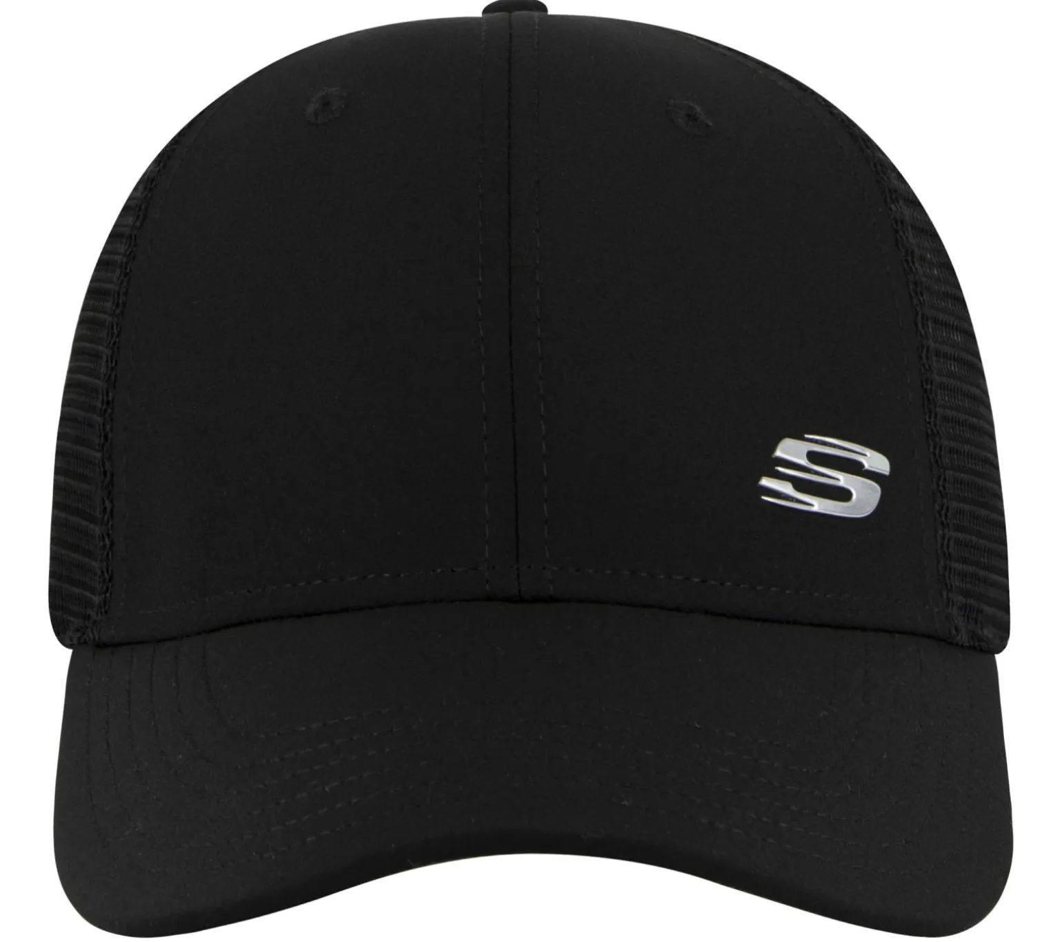 Add a comfort essential to your look with Skechers Sport S Metal Hat. Featuring a woven fabric and mesh fabric in an adjustable trucker style hat with a front logo graphic.