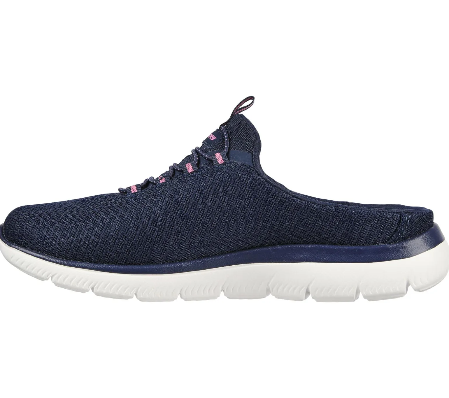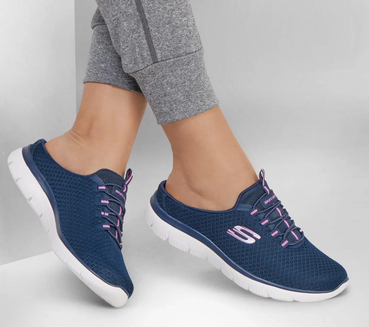 Step in laid-back sporty style and cushioned comfort with Skechers Summits – Swift Step. This open-back slip-on features an athletic mesh upper with stretch laces and a cushioned Skechers Memory Foam cushioned insole.