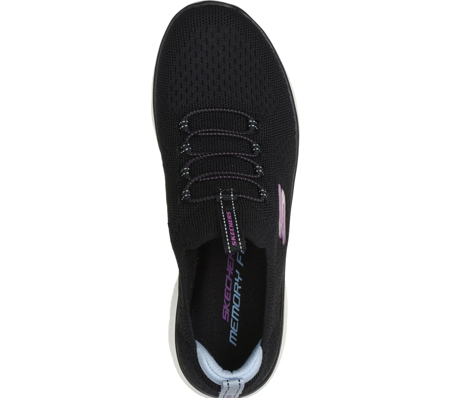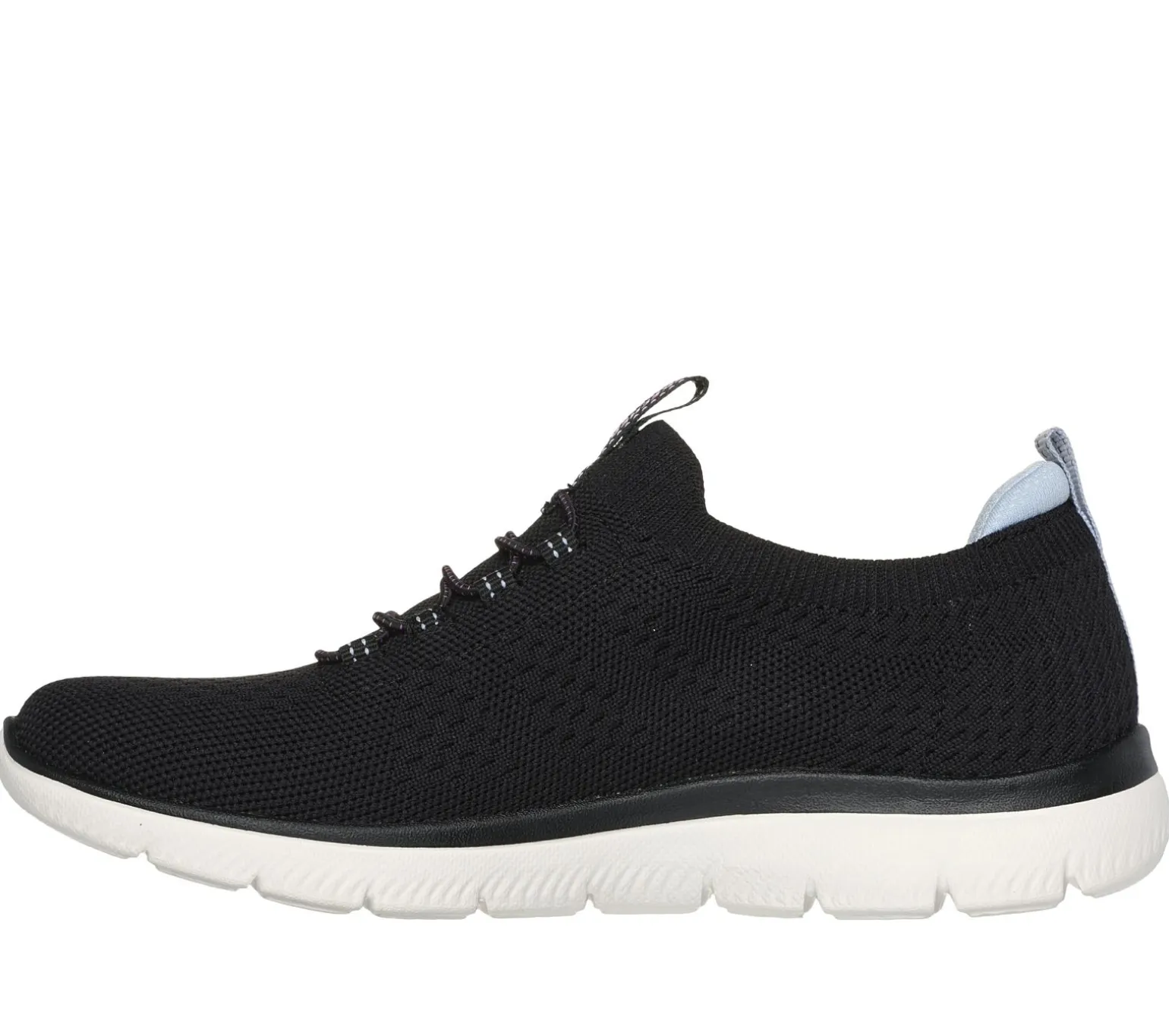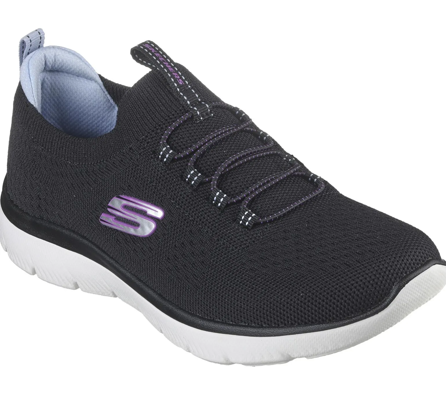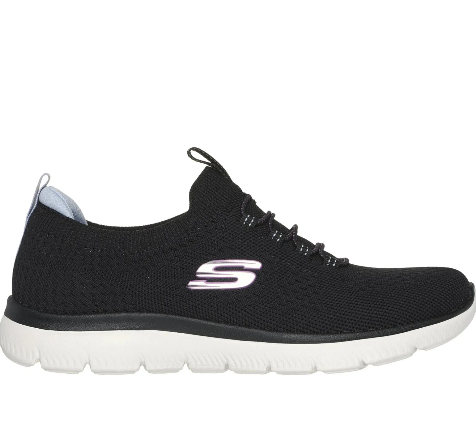 Reach the height of comfort and athletic style with Skechers Summits. This stretch-laced vegan design features a Stretch Fit® engineered knit upper and a cushioned Skechers Memory Foam comfort insole.