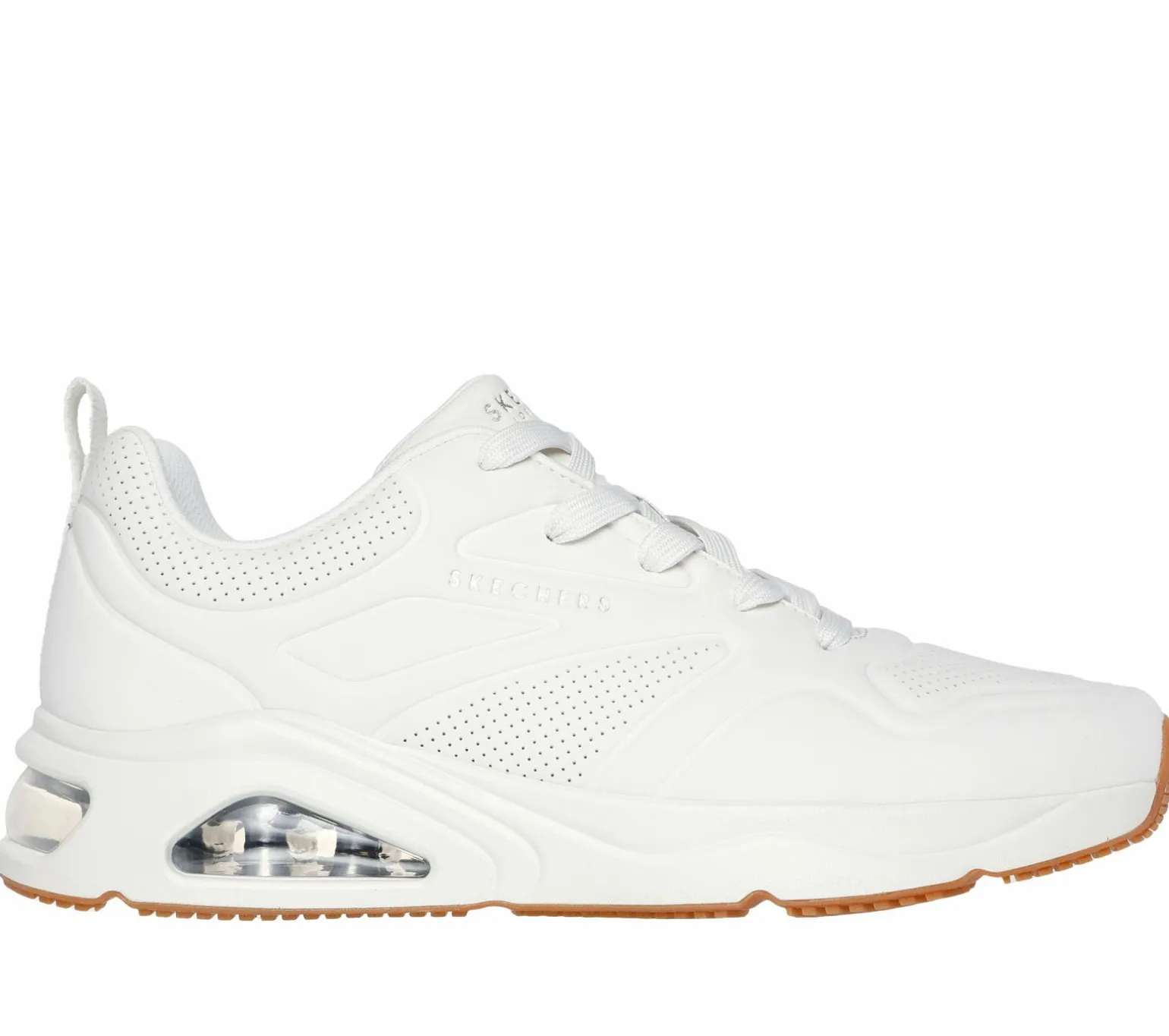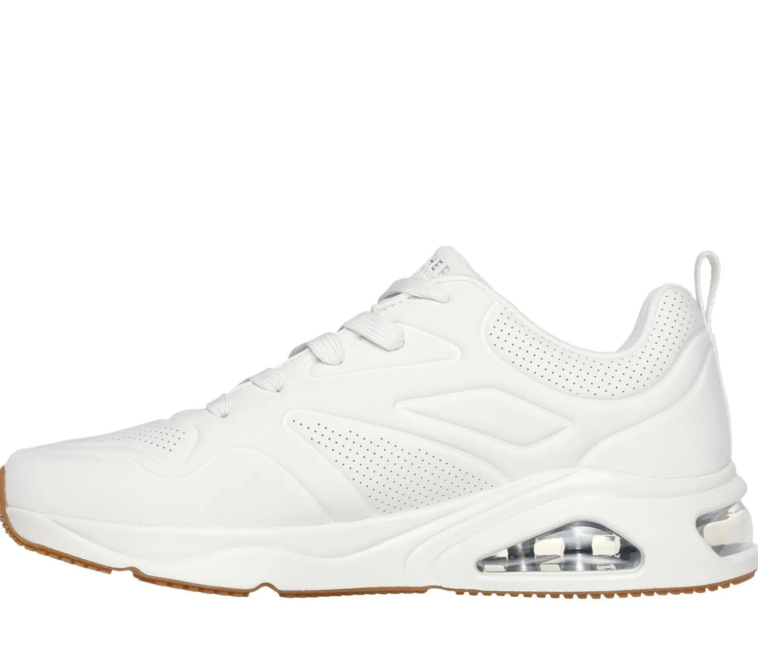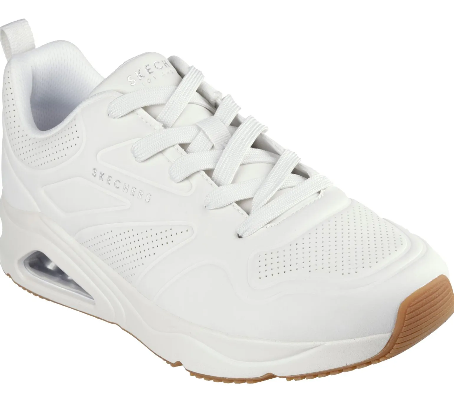Stand out with a fresh kick from Skechers Street Tres-Air Uno – Casairal. This sporty fashion lace-up features a synthetic duraleather embossed upper with a visible Skech-Air® airbag midsole and a Skechers Air-Cooled Memory Foam® insole.