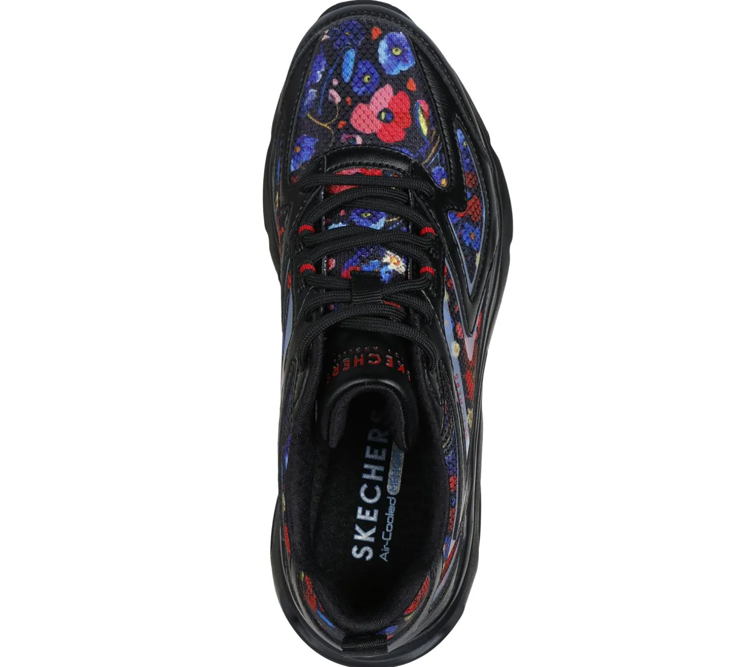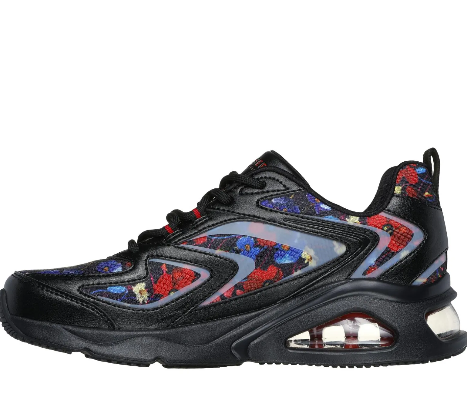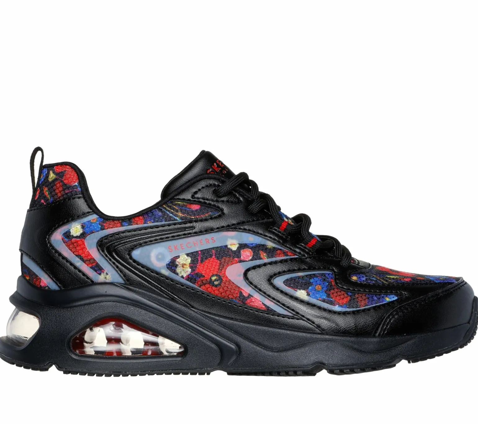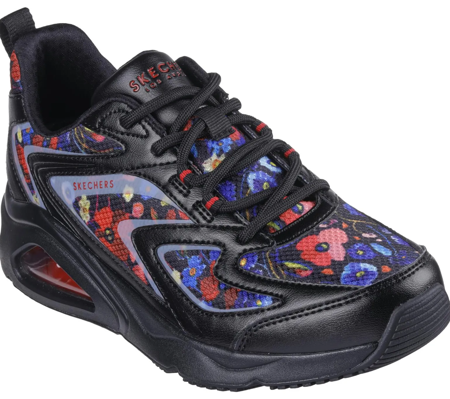Stand out with a colorful kick from Skechers Street Tres-Air Uno – Botanical Bliss. This sporty fashion lace-up features a floral-printed mesh upper with duraleather overlays, a Skechers Air-Cooled Memory Foam® insole, and a triple window Skech-Air® visible airbag midsole.