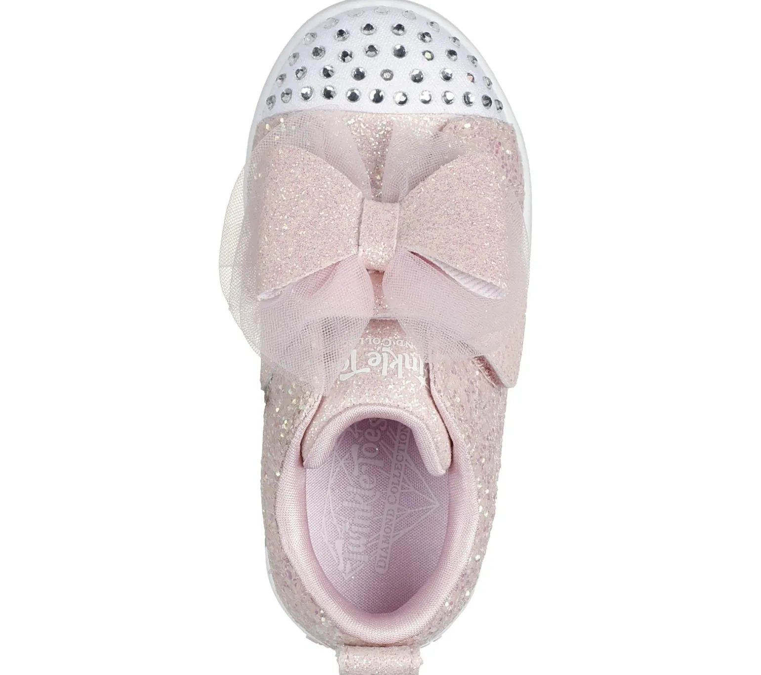 Light up their little world with Skechers Twinkle Toes®: Twi-Lites 2.0 – Sweetie Bow. This sparkly design features an allover glitter upper with a light-up rhinestone embellished toe cap and closure strap with a tulle and rhinestone embellished bow.