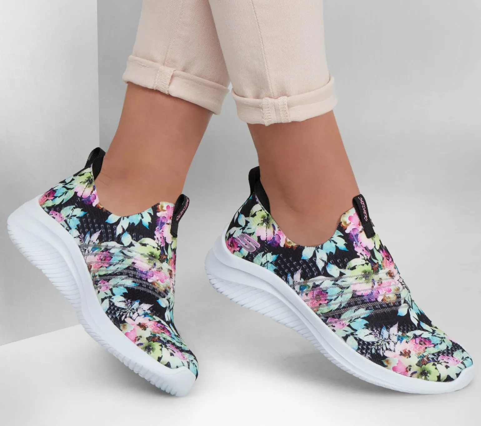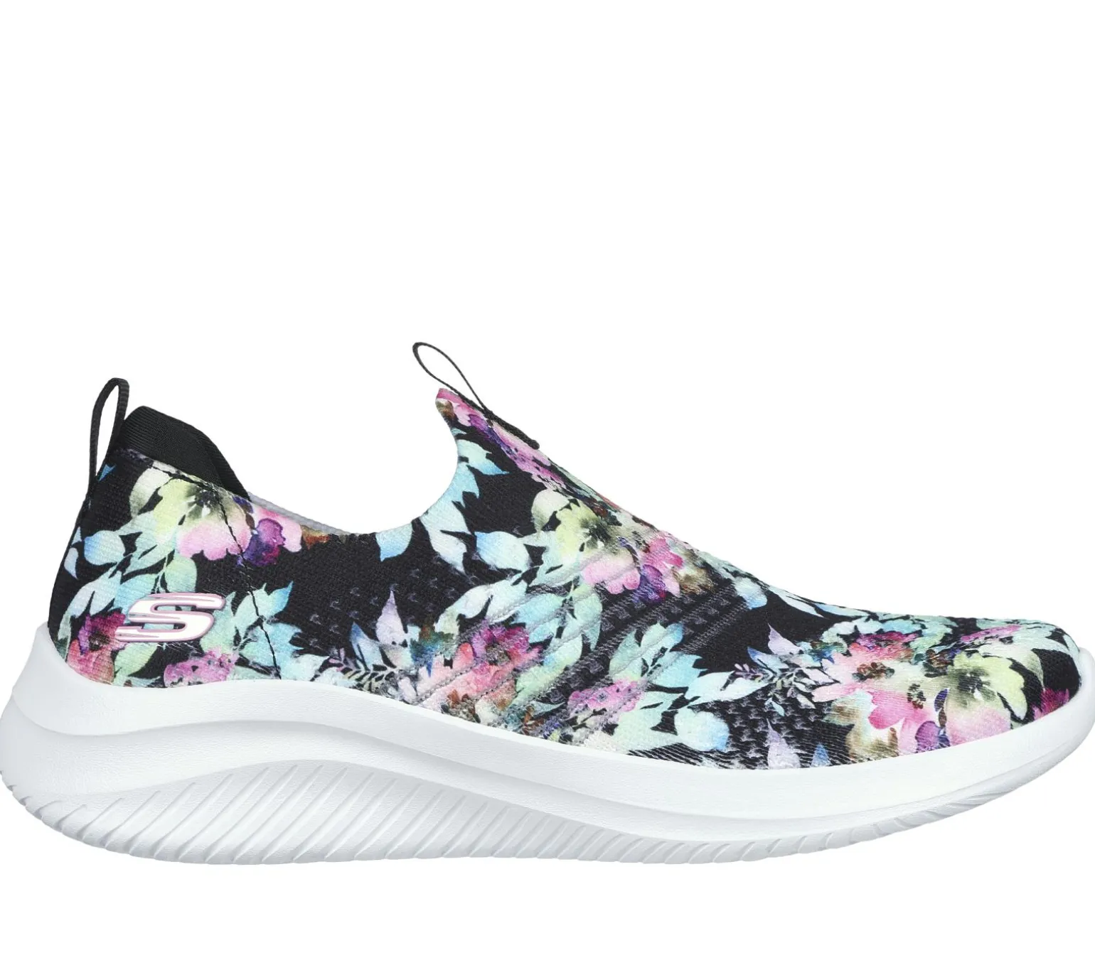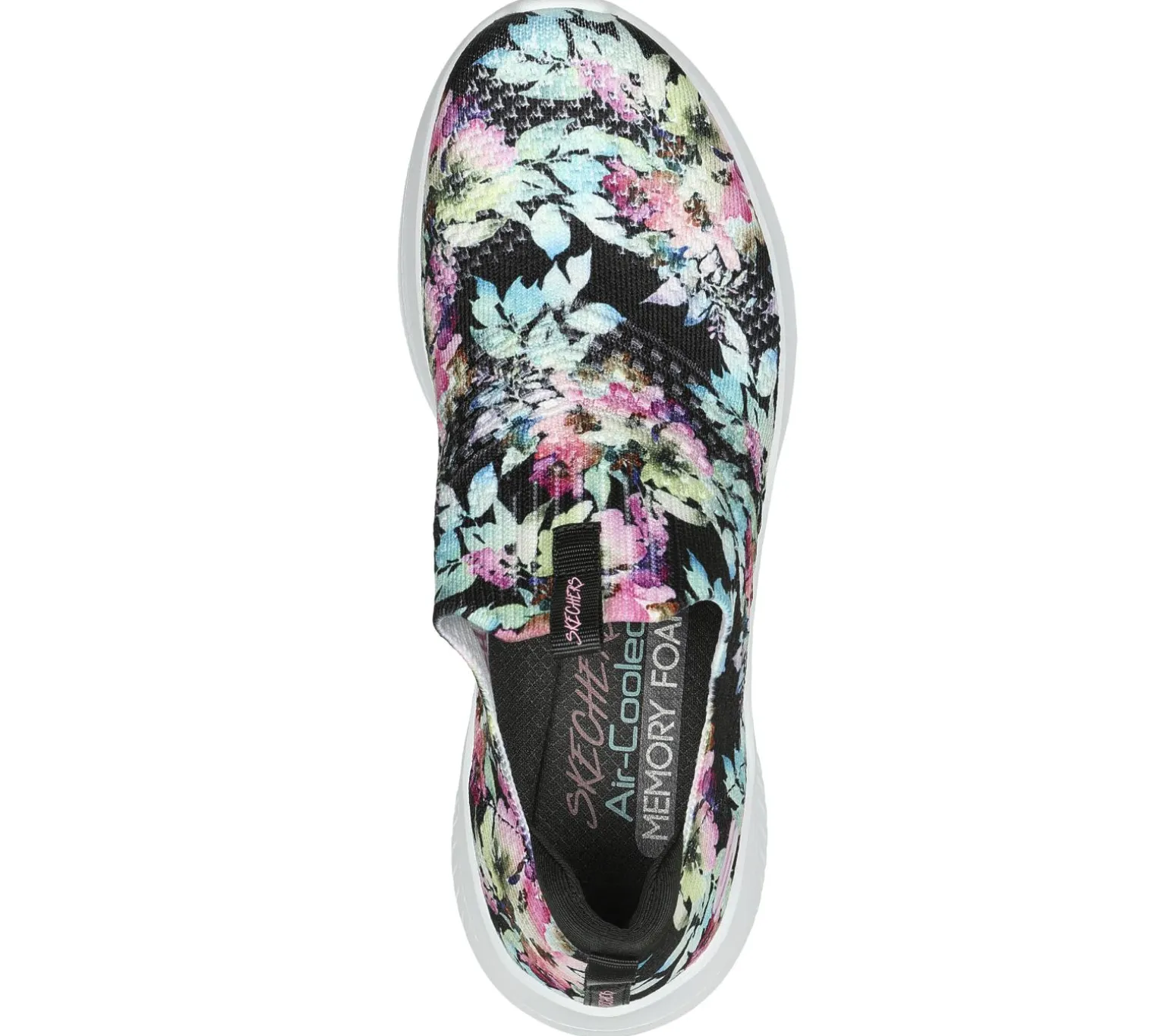Enjoy a bouquet of style and comfort technologies wearing Skechers Ultra Flex 3.0 – Flower Road. This vegan laceless design features an engineered Stretch Fit® knit upper in an allover floral print with a Skechers Air-Cooled Memory Foam® insole.