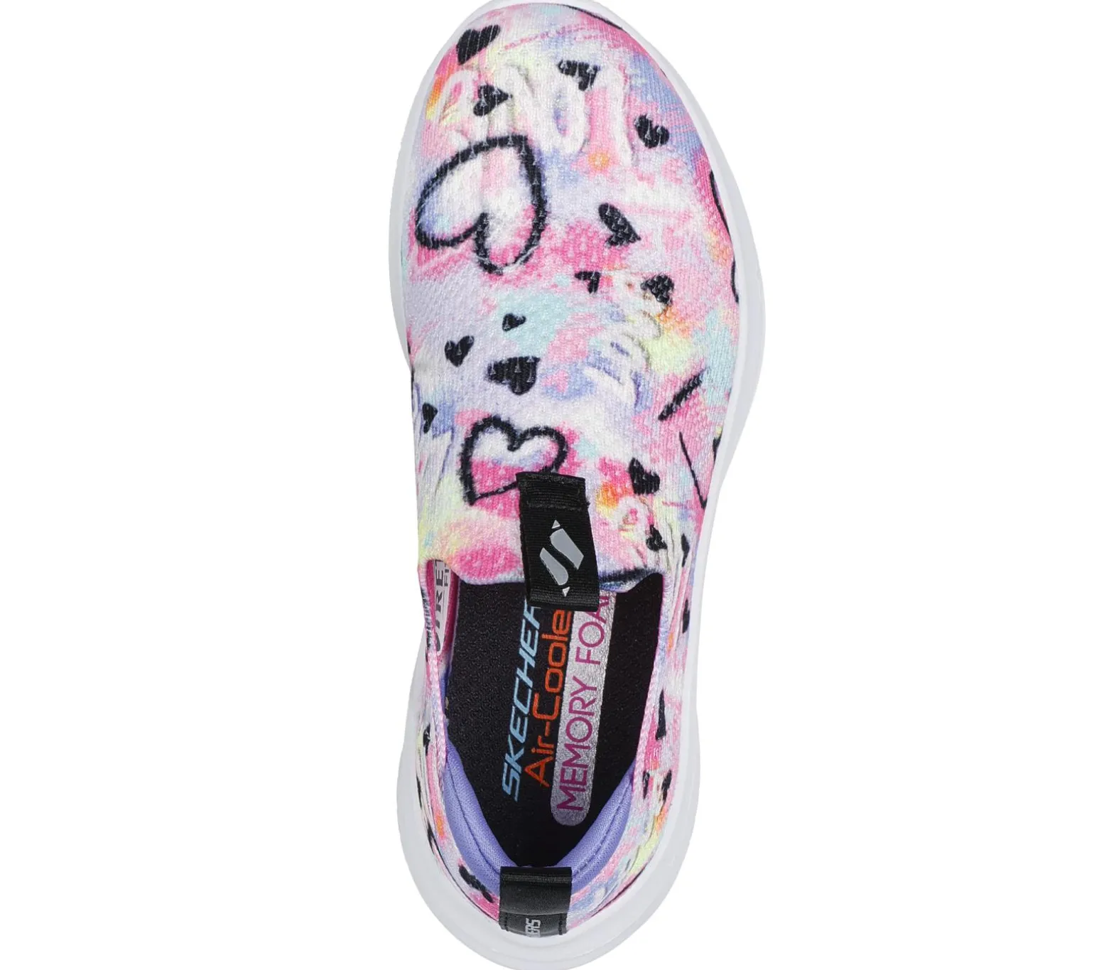 They’ll be on-trend cool and super comfortable wearing Skechers Ultra Flex 3.0 – Graffiti Rush. This colorful laceless sneaker features a hearts and love ‘graffiti’ printed Stretch Fit® knit upper with a cushioned Skechers Air-Cooled Memory Foam® insole.
