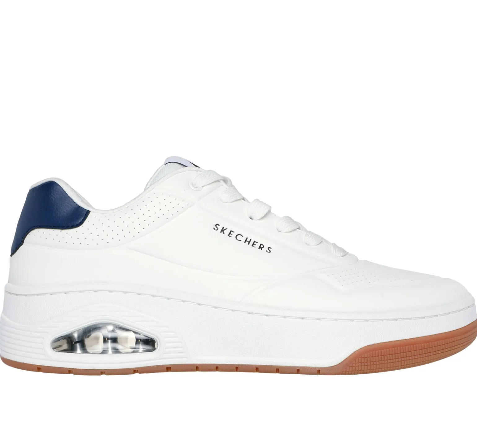 An iconic classic gets a fresh update in Skechers Street Uno. This lace-up court style fashion sneaker features a duraleather upper with a cushioned Skechers Air-Cooled Memory Foam® insole and a visible Skech-Air® airbag midsole.