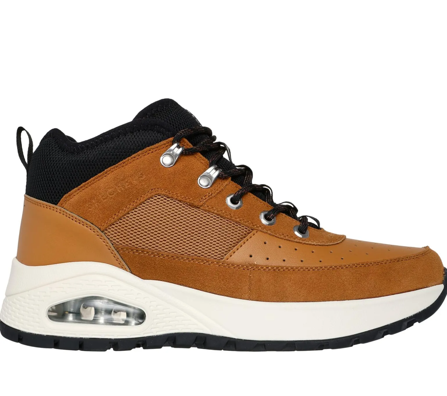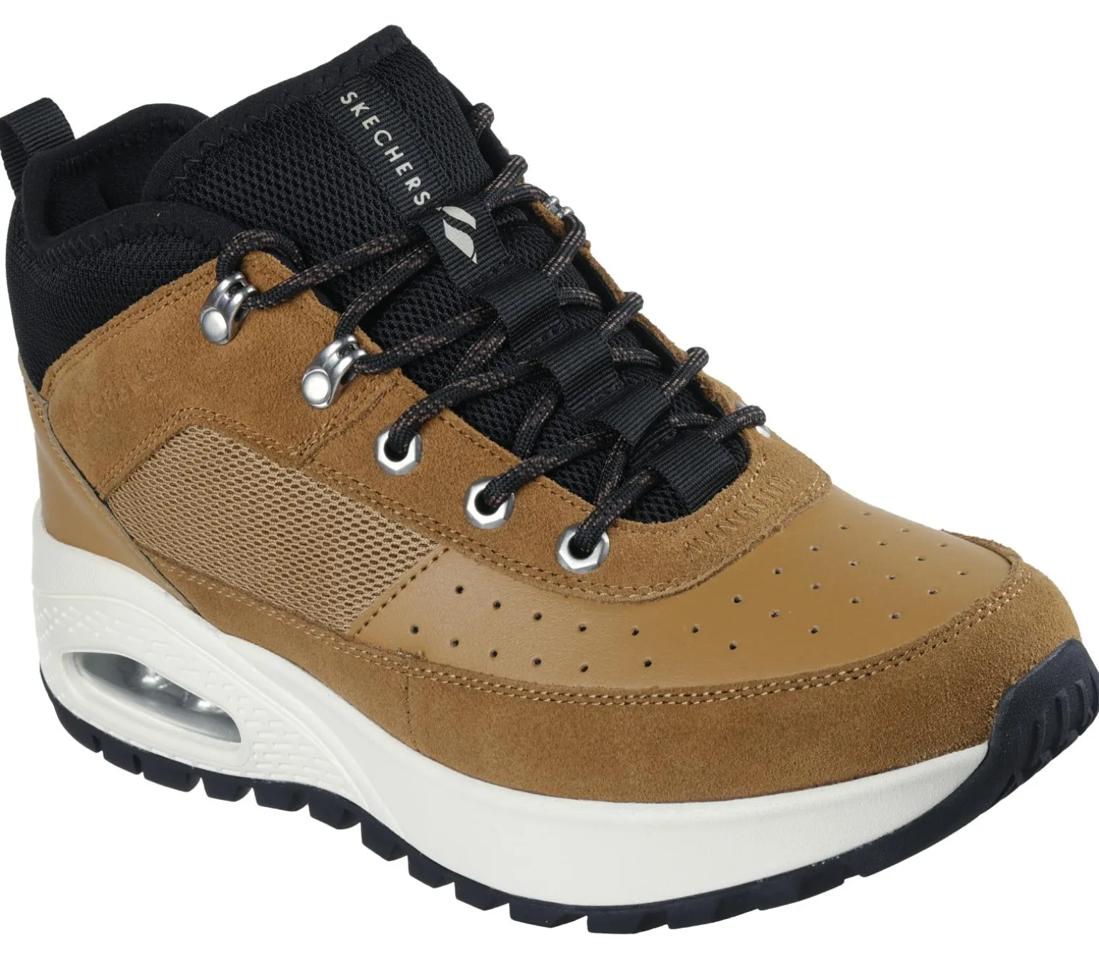 Step into stylish hiker vibes with Skechers Street Uno Rugged – Adventure Air. This outdoor-inspired lace-up sneaker bootie features a mesh, suede, and duraleather upper with a padded collar, Skechers Air-Cooled Memory Foam® cushioning, and a Skech-Air® visible airbag midsole.