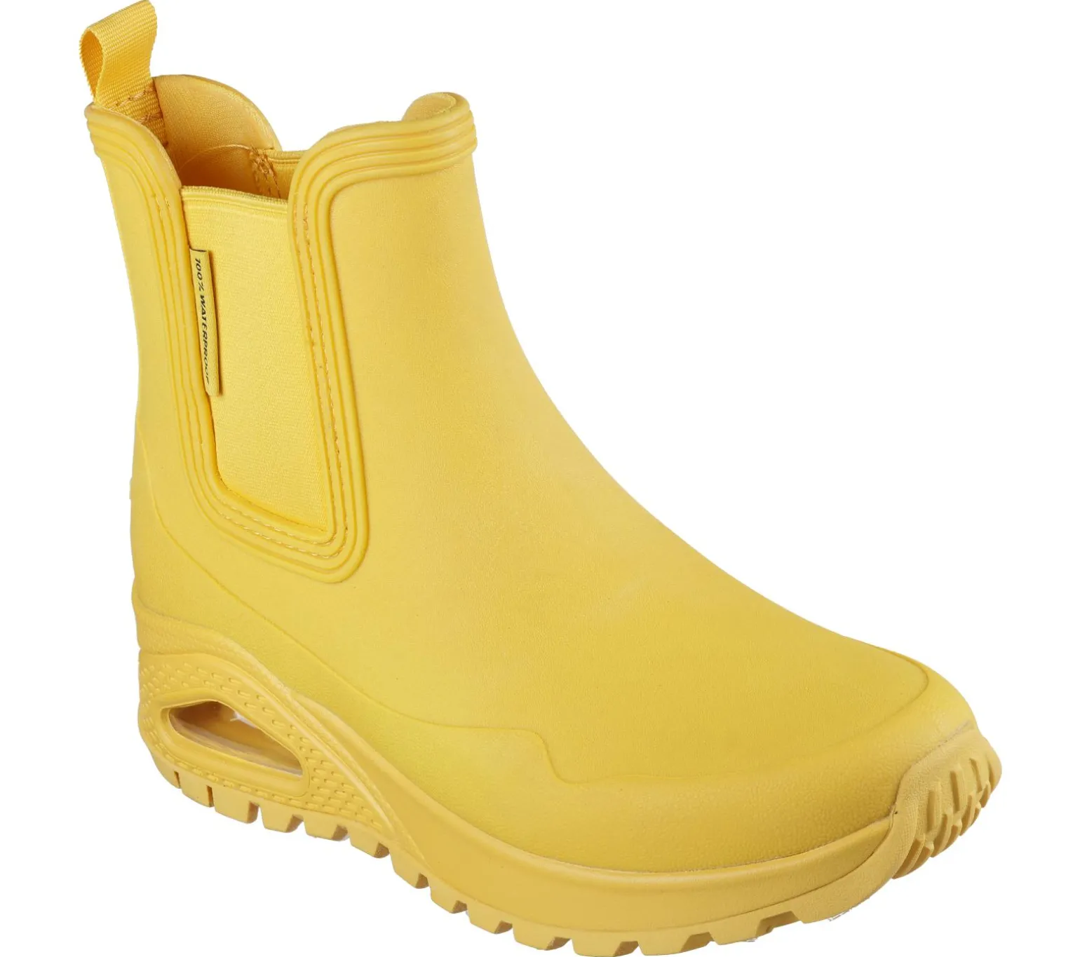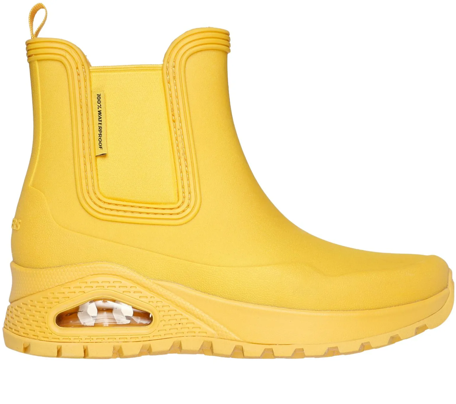 Get iconic style and comfort rain or shine with Skechers Street Uno Rugged – Dancing N The Rain. This fashion rain boot features a waterproof synthetic upper with a cushioned Skechers Air-Cooled Memory Foam® insole, and a Skech-Air® visible airbag midsole.