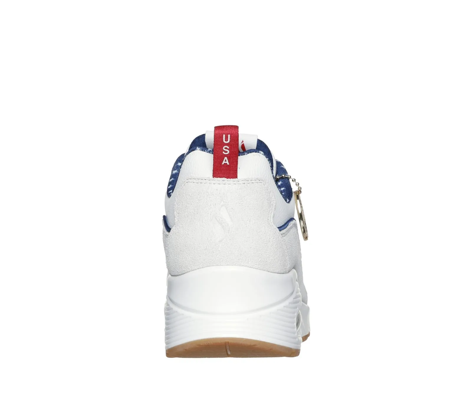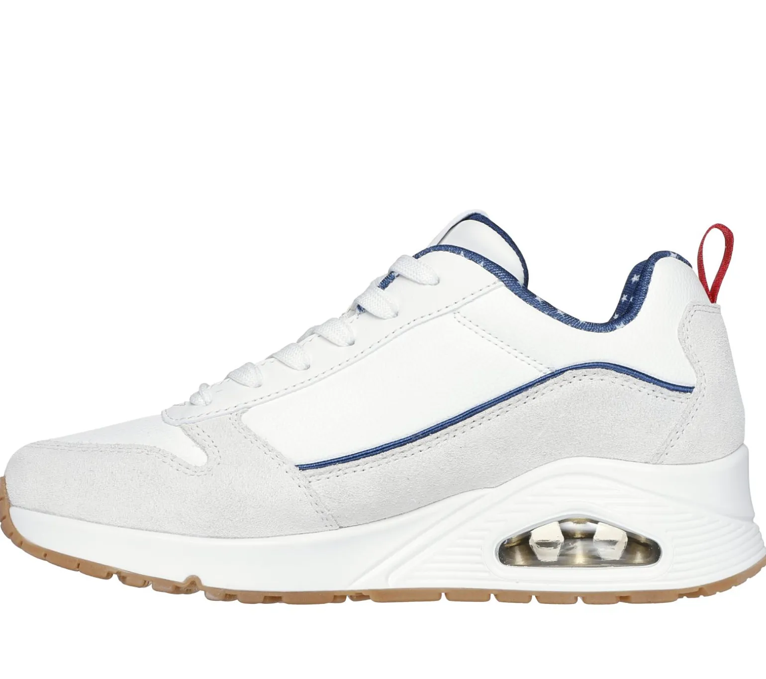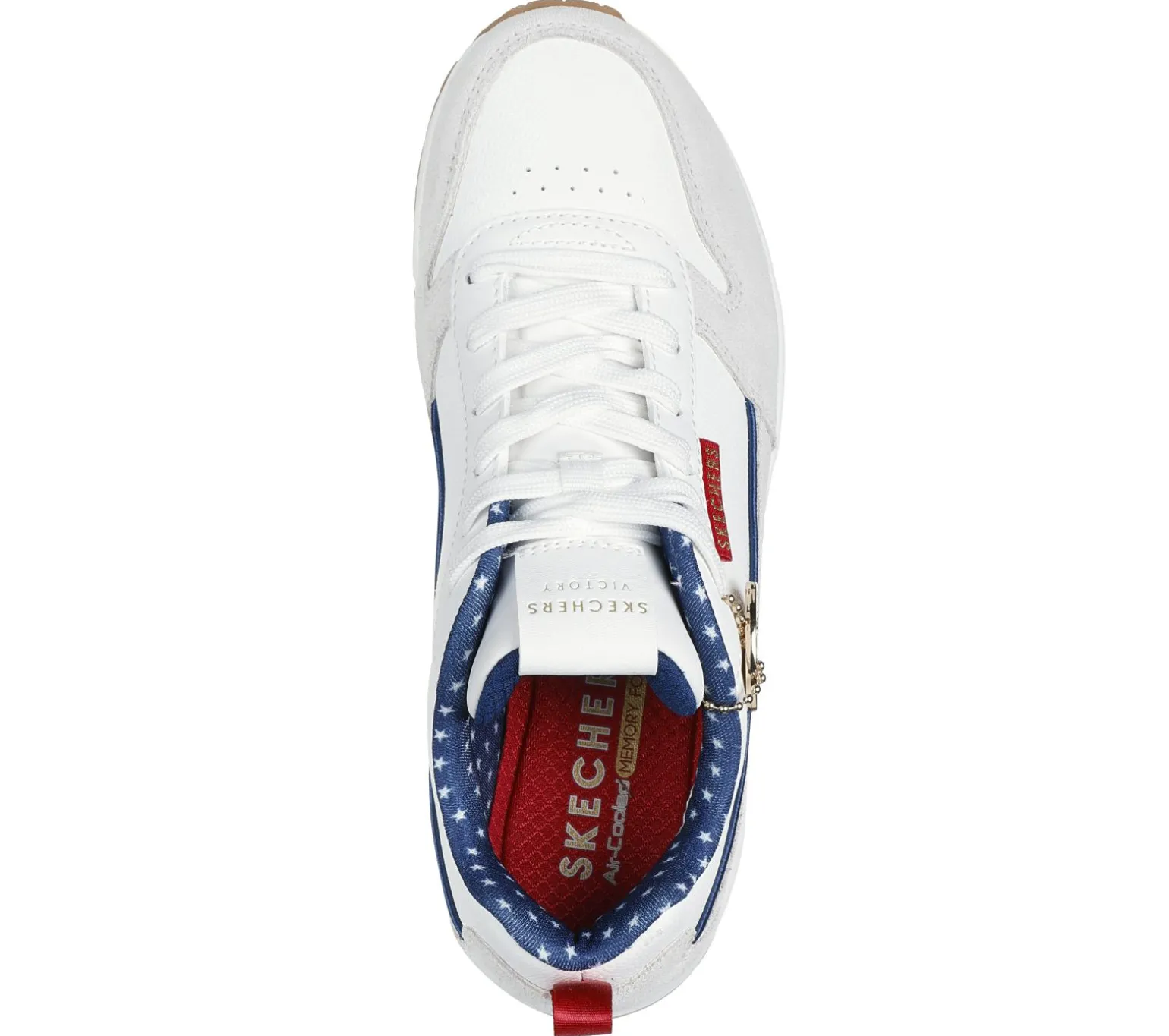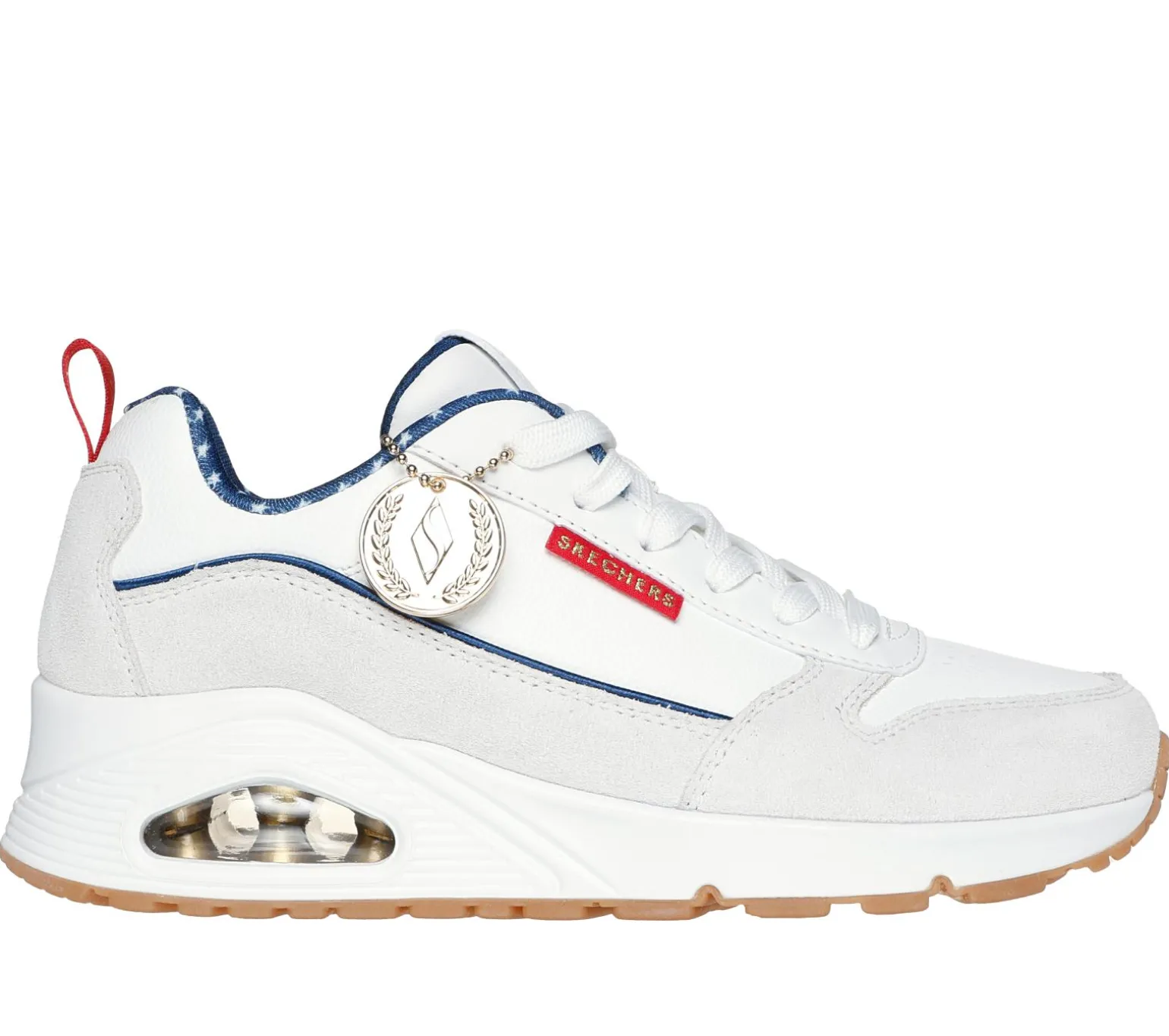 Game on! Cheer for the world’s best in the Skechers Street Uno Victory Pack – a retro sneaker capsule in colors that represent the flags of the USA, France, Italy, Germany, Mexico, Spain and the United Kingdom. Featuring a durabuck upper with genuine suede overlays, Skechers Air-Cooled Memory Foam® insoles, visible Skech-Air® midsoles, plus a detachable shoe charm. Celebrate history in the making in style and comfort.