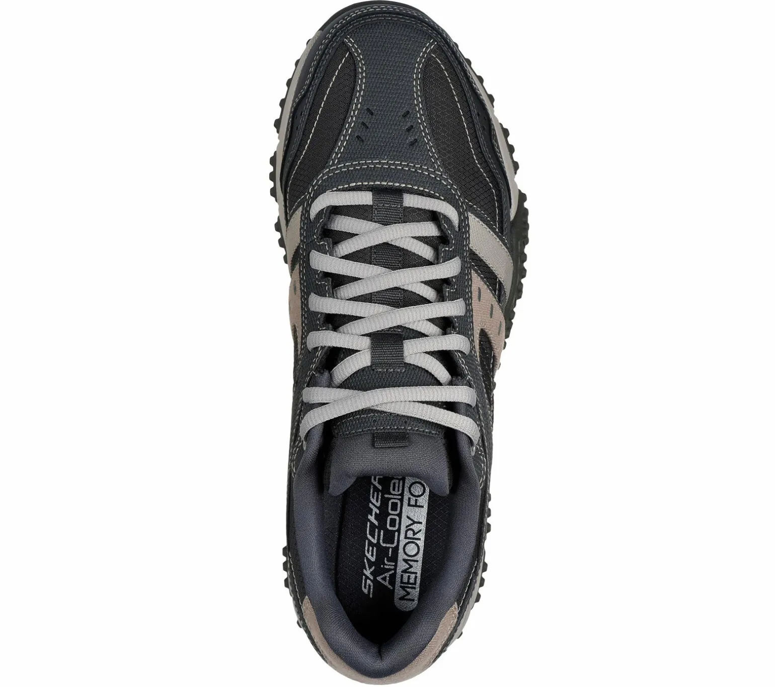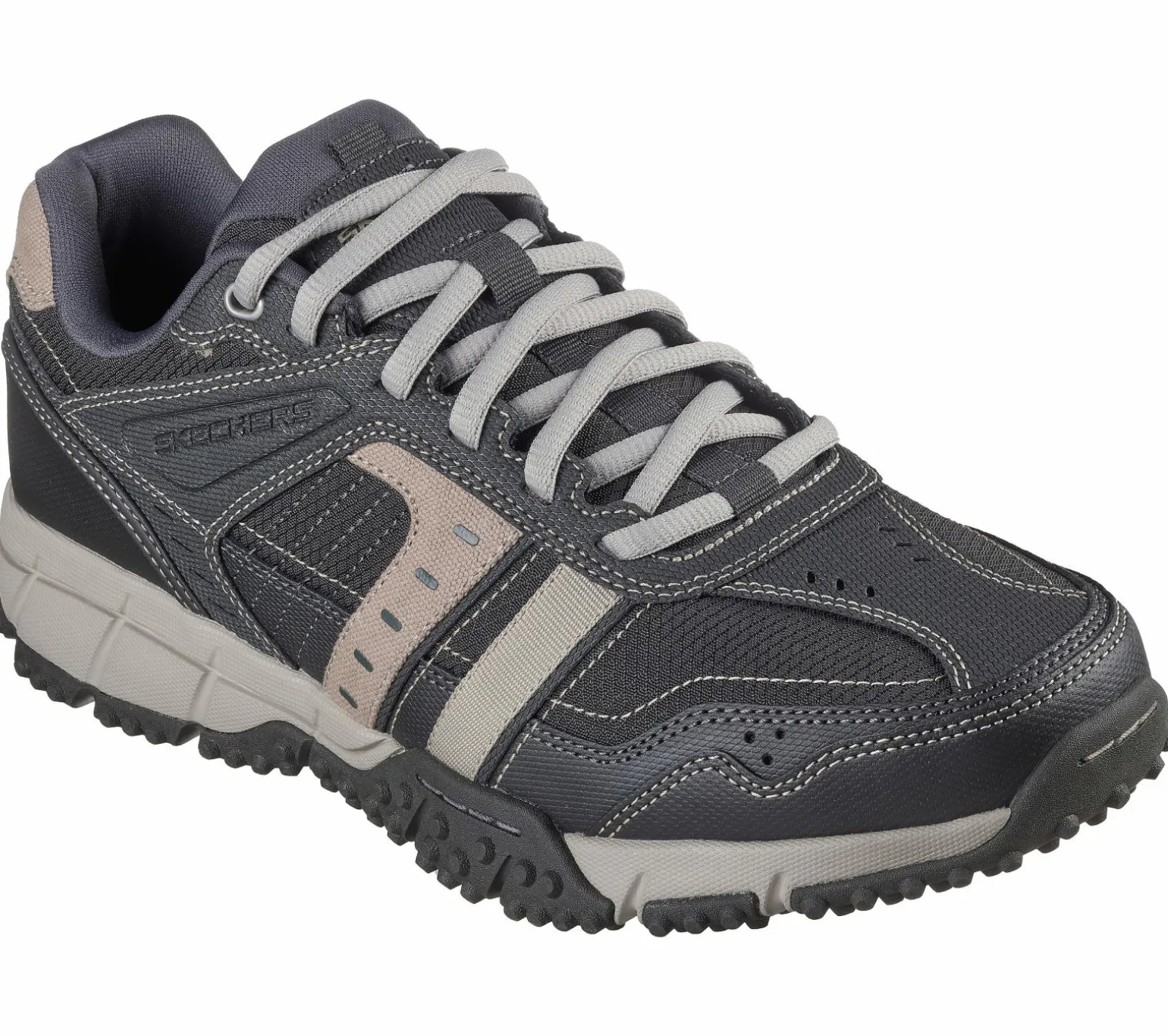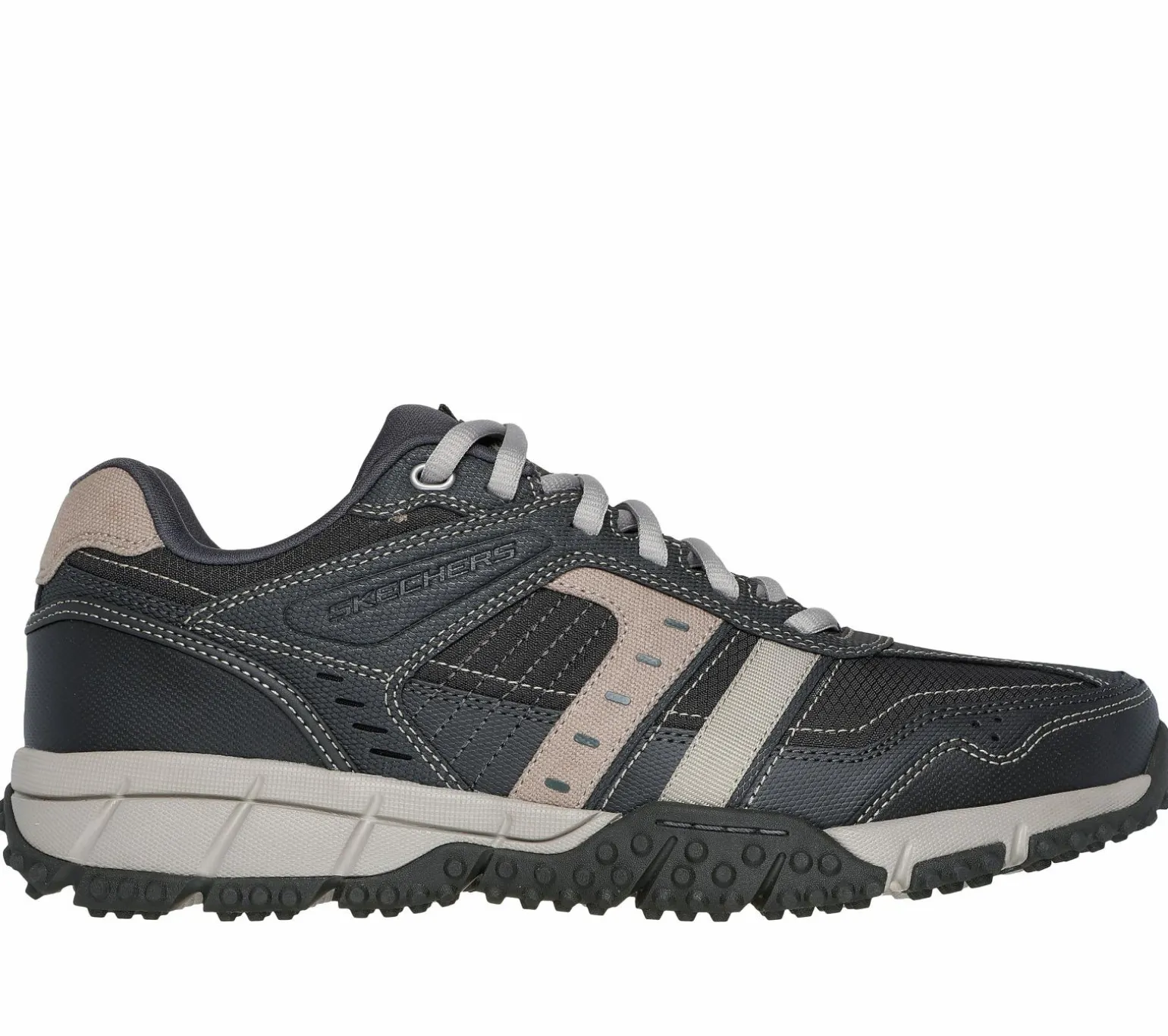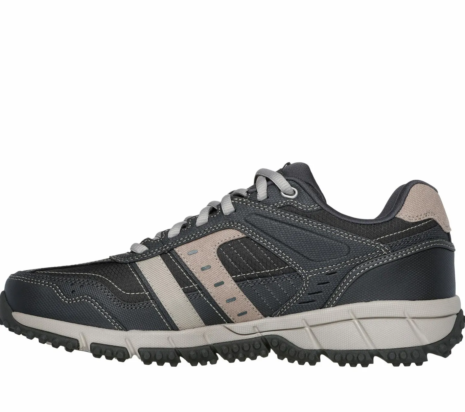 Tear into the terrain in sporty style and trail-walking comfort with Skechers Urban Trax. This casual hiker features a lace-up leather and synthetic upper with a cushioned Skechers Air-Cooled Memory Foam® insole.
