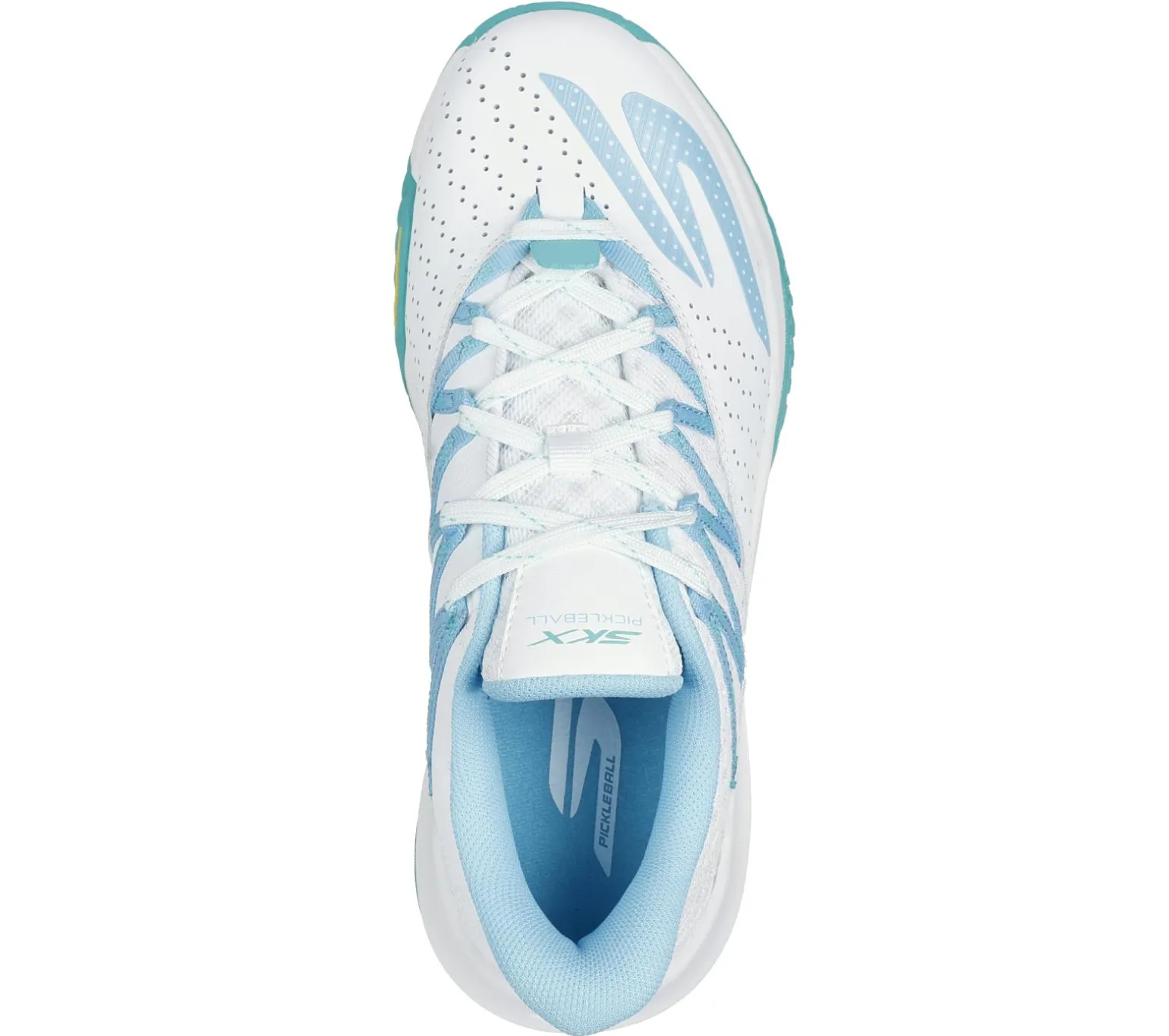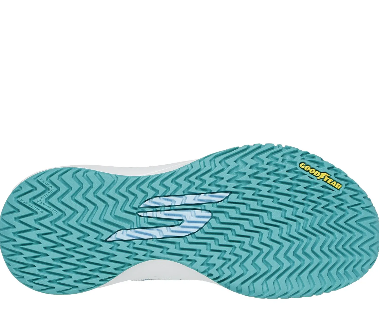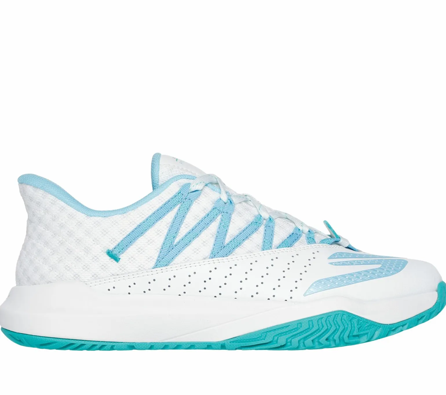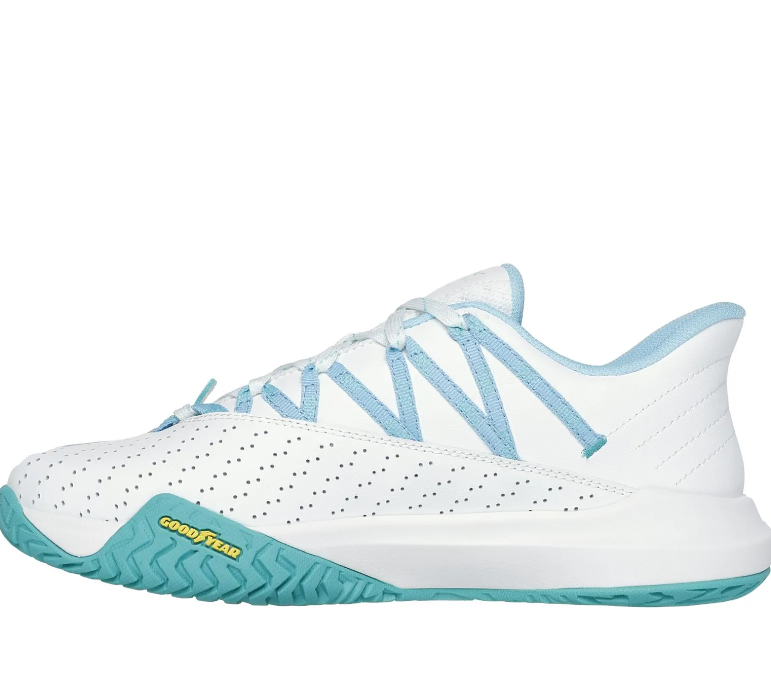 Step up your game with Skechers Viper Court Rally. This lace-up Pickleball shoe features a mesh and perforated leather overlay upper with a lightweight Move Foam insole. The design is complete with a Goodyear® Gold compound outsole that’s built for increased durability to allow the elite player to perform controlled slides specifically on the pickleball court surface.