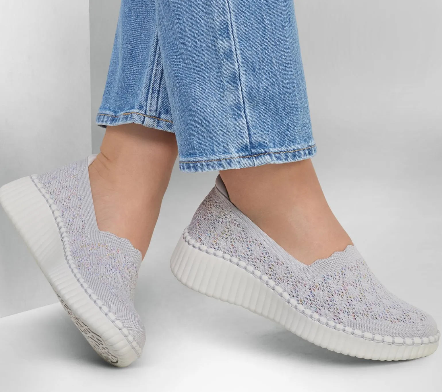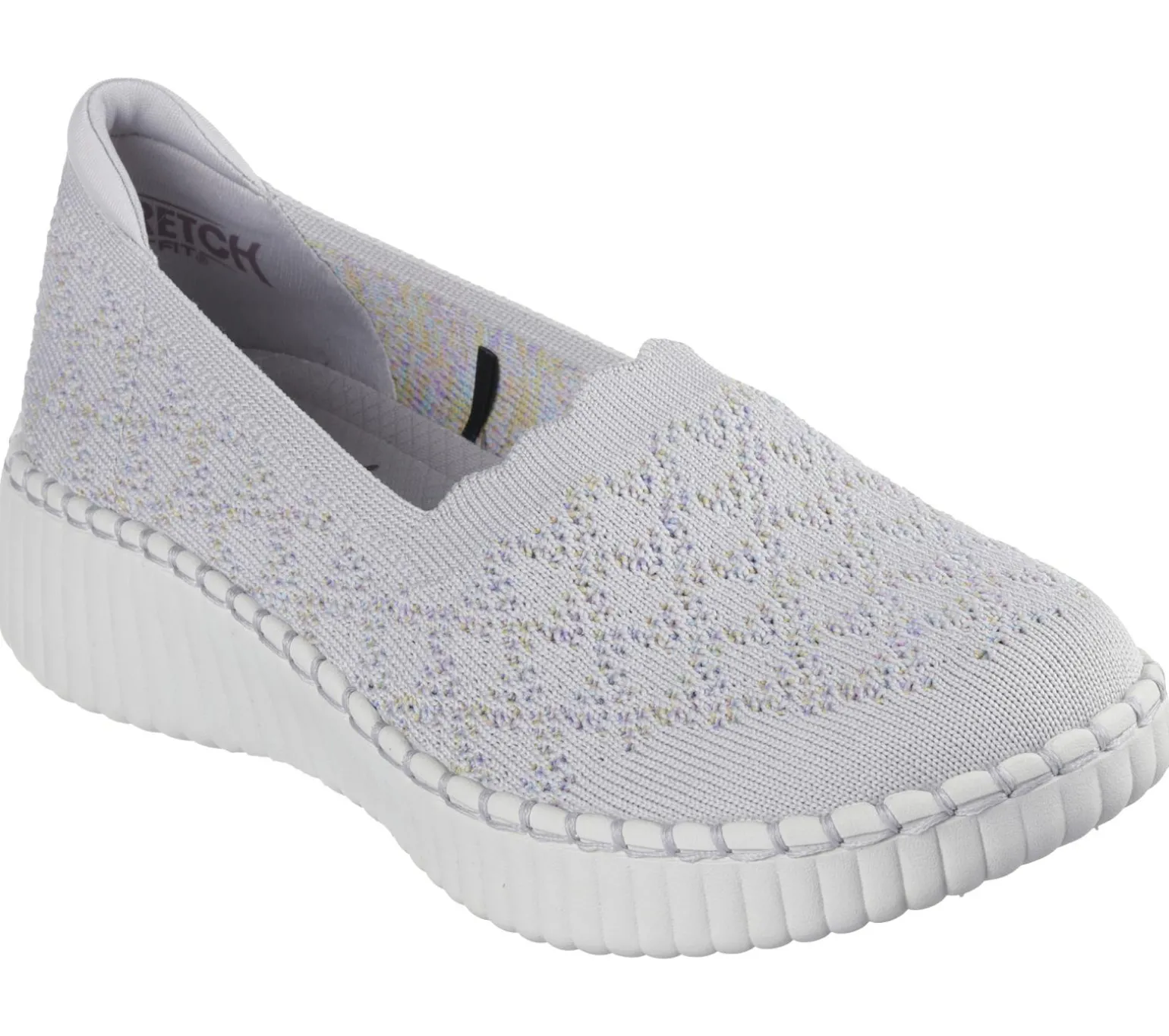 Look stylish all around with flexible easy-wearing comfort in Skechers Wilshire Blvd – Power Play. This casual vegan design features a Stretch Fit® crochet knit upper with a scalloped instep, midsole stitching trim, and a cushioned Skechers Air-Cooled Memory Foam® comfort insole.