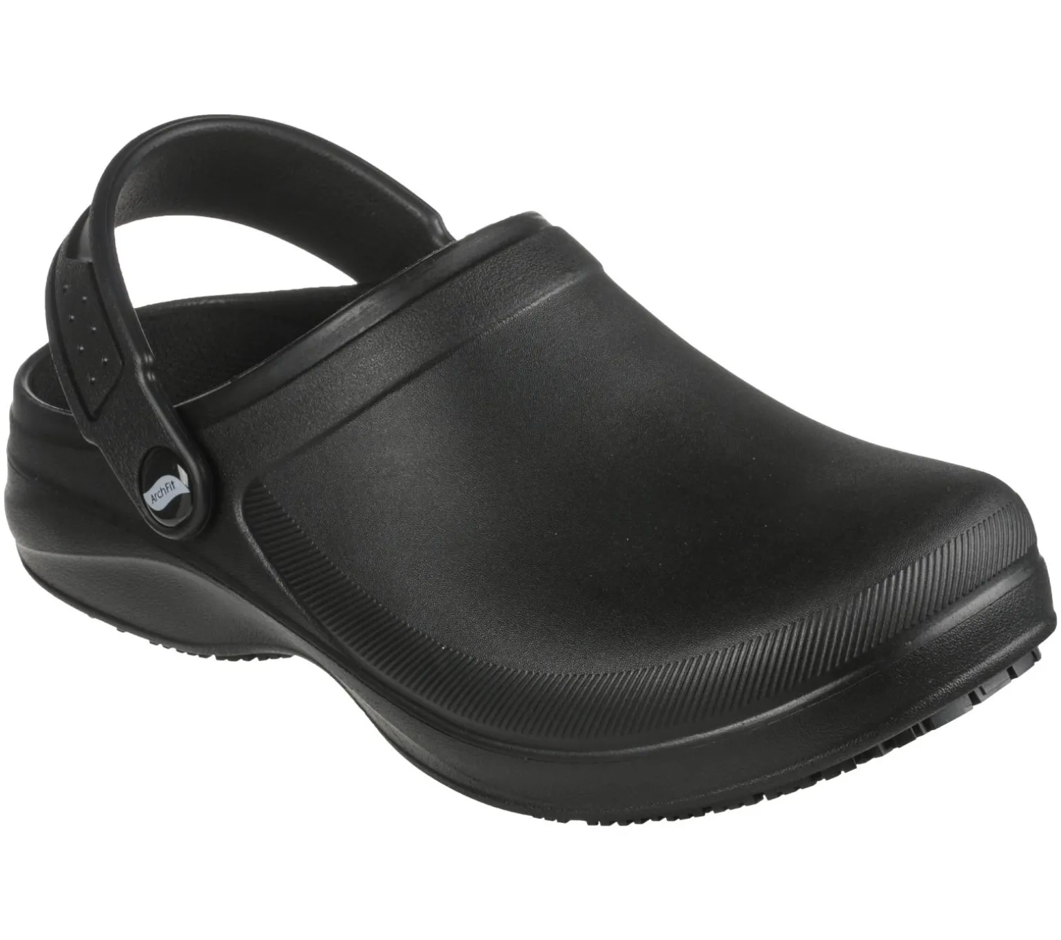 Slip on supportive comfort before starting your prep work wearing Skechers Work Arch Fit®: Riverbound – Pasay SR clog. This slip-resistant clog features a sculpted flexible EVA upper with an Arch Fit® contoured footbed and a convertible heel sling strap.