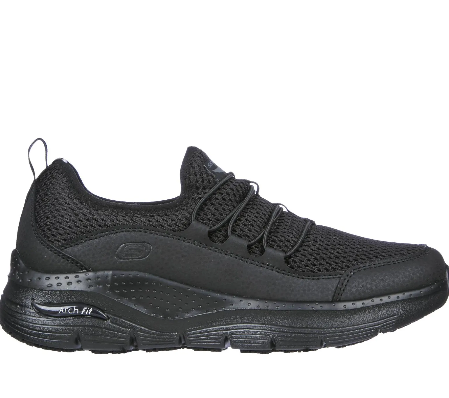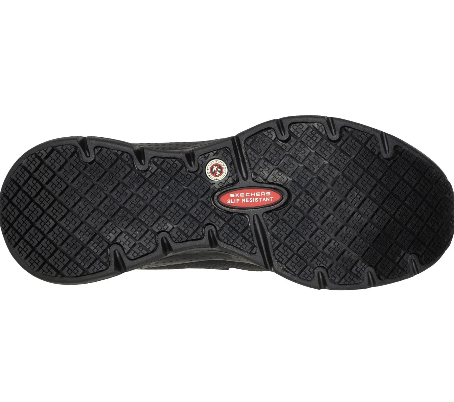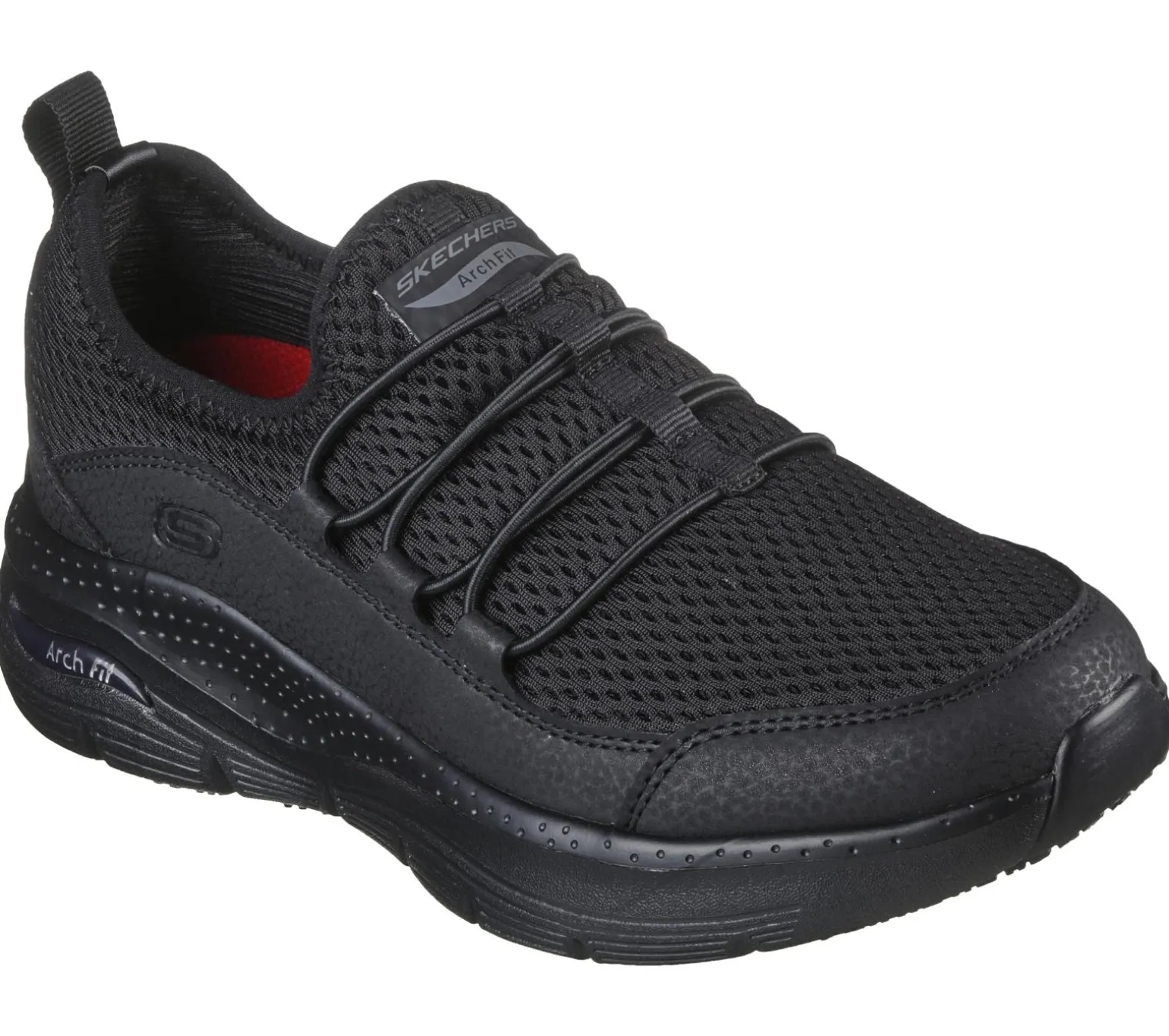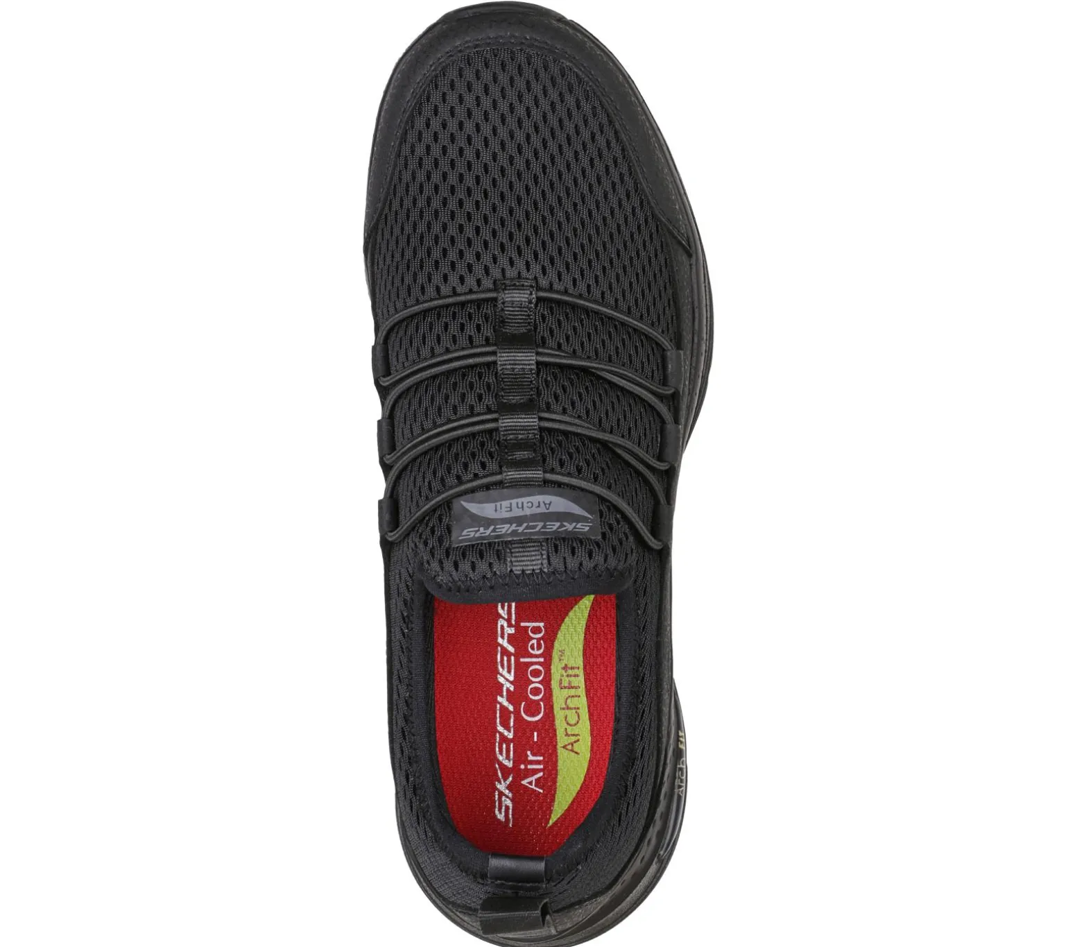 Energize your workday in supportive cushioned comfort wearing Skechers Work: Arch Fit SR – Jitsy. This slip-resistant design features a breathable athletic mesh upper with a bungee-laced front and removable Arch Fit® insole.