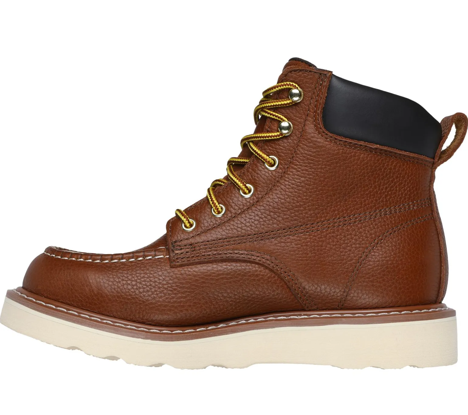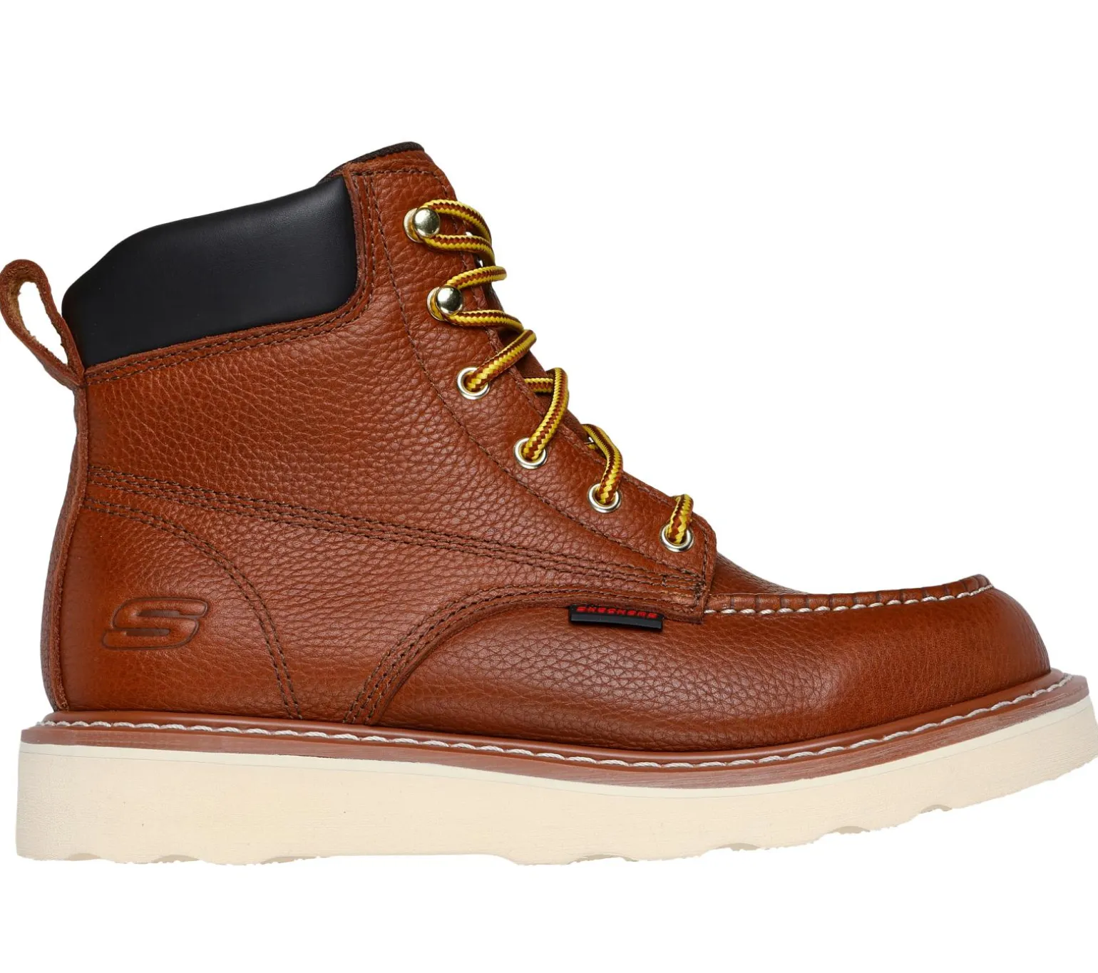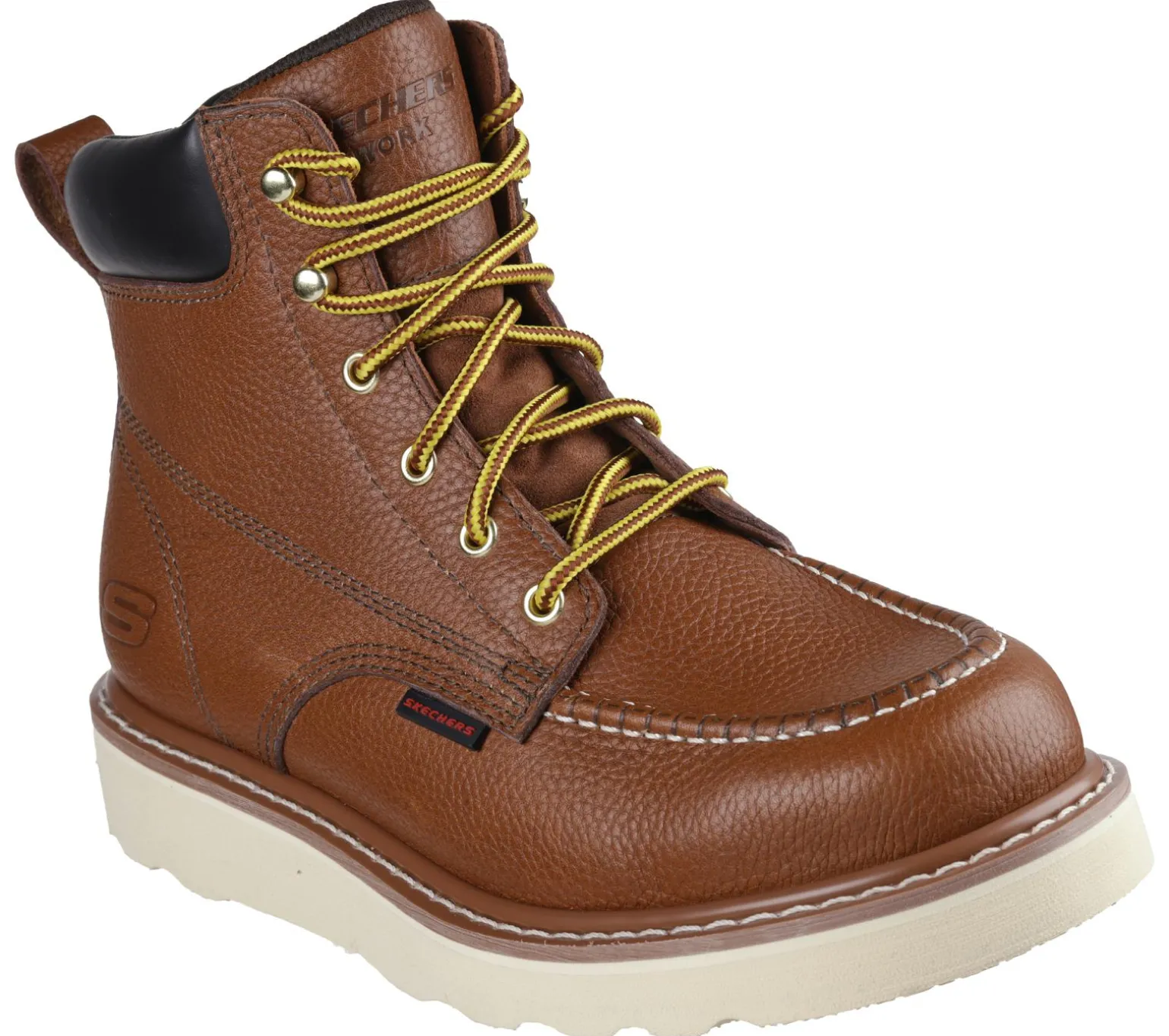 Classic leather work boot style comes to the job site in Skechers Work: Kadmiel – Bennot. This lace-up work boot features a leather upper with a synthetic padded collar, a cushioned Air-Cooled Memory Foam® insole, and a durable Goodyear welt midsole.