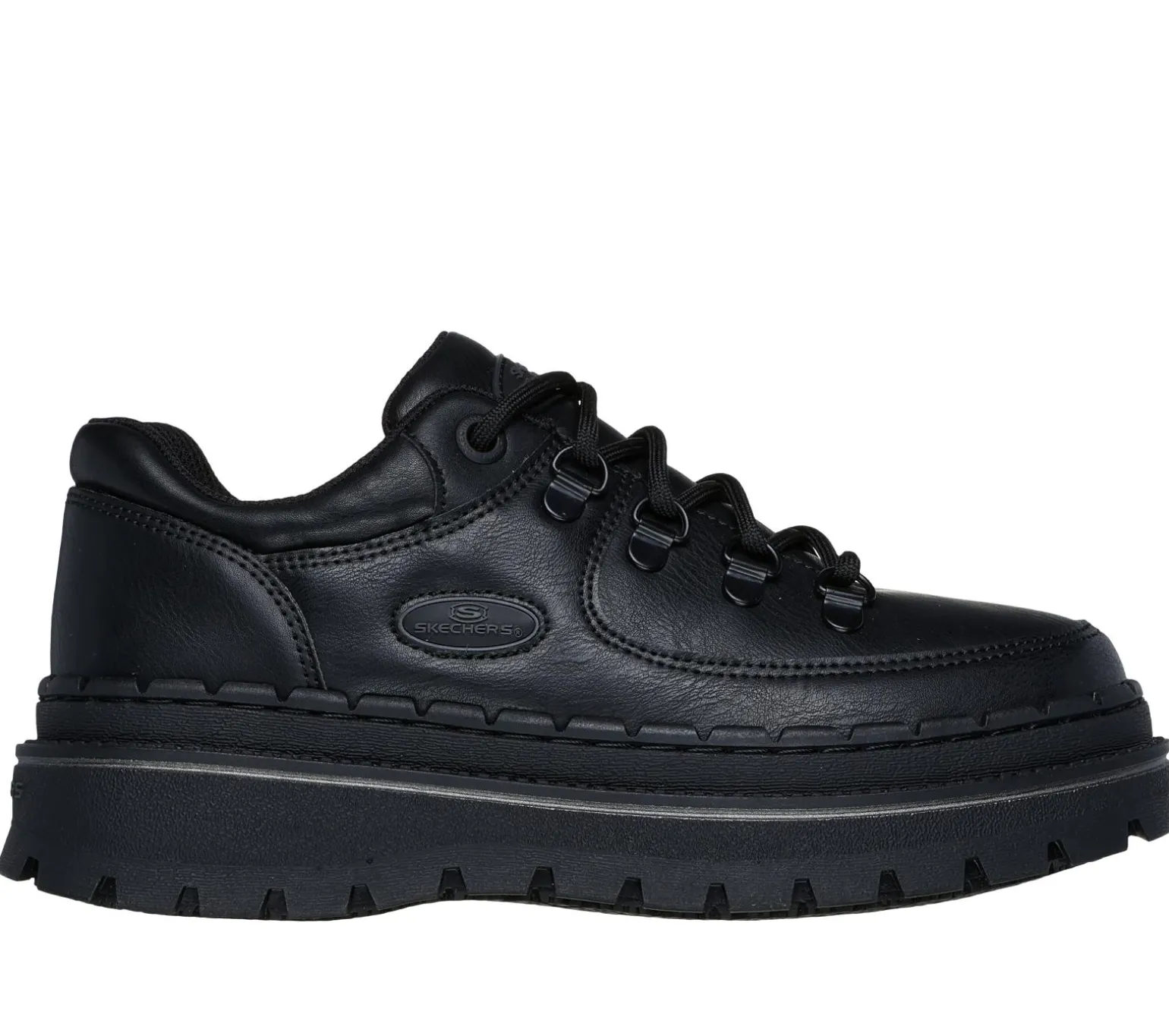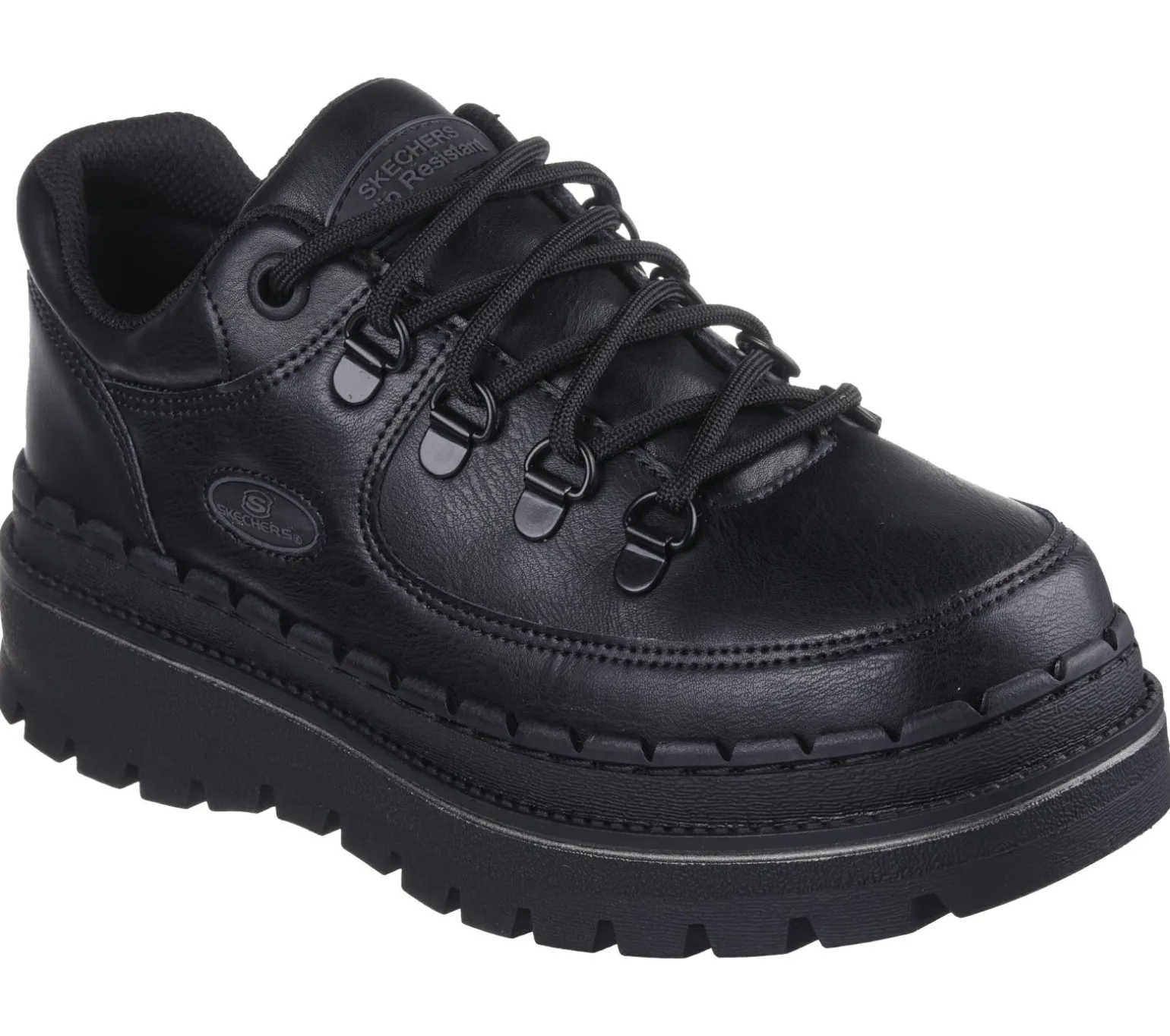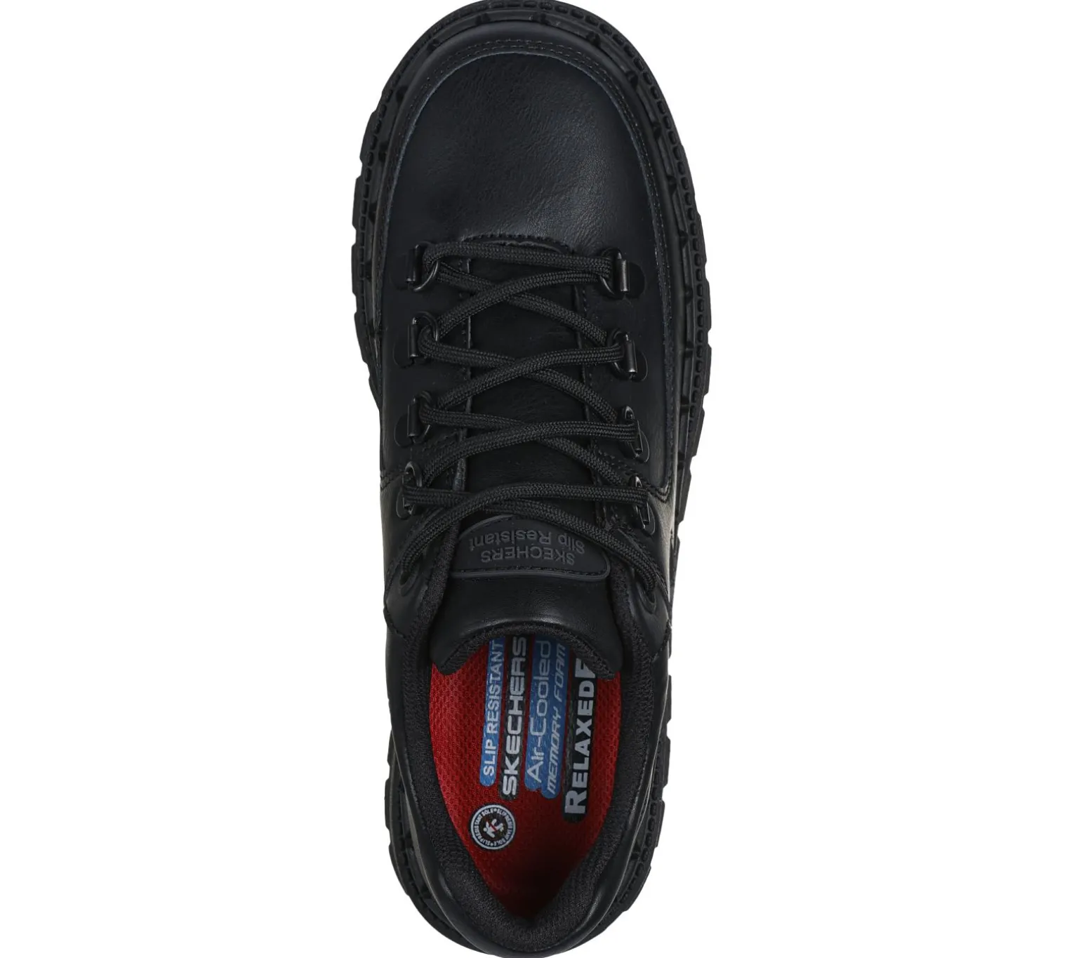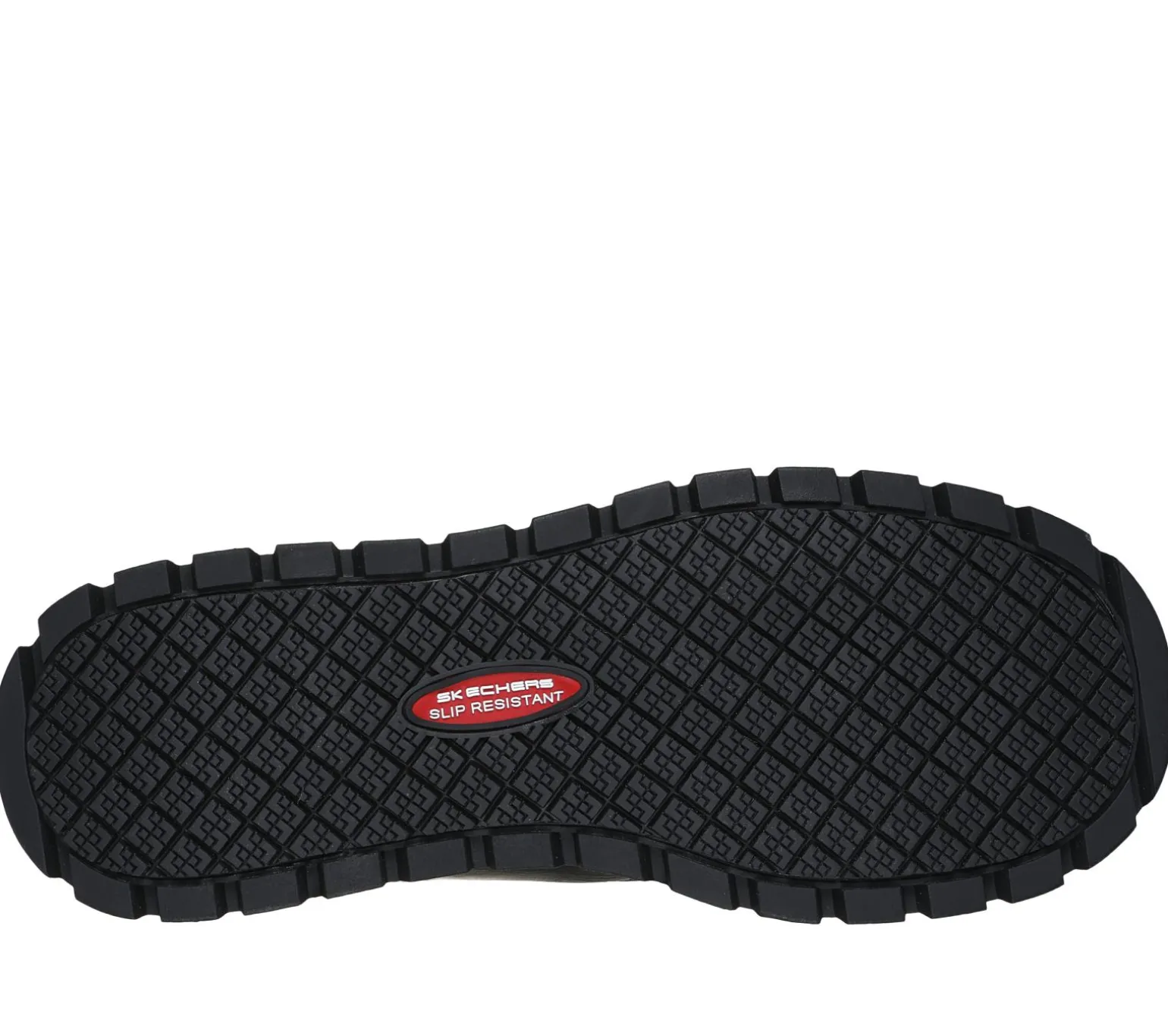 A favorite style arrives in comfort and safety with Skechers Work Relaxed Fit®: Jammers SR – Zesi. This slip-resistant lace-up features a leather and synthetic upper with a cushioned Skechers Air-Cooled Memory Foam® insole.