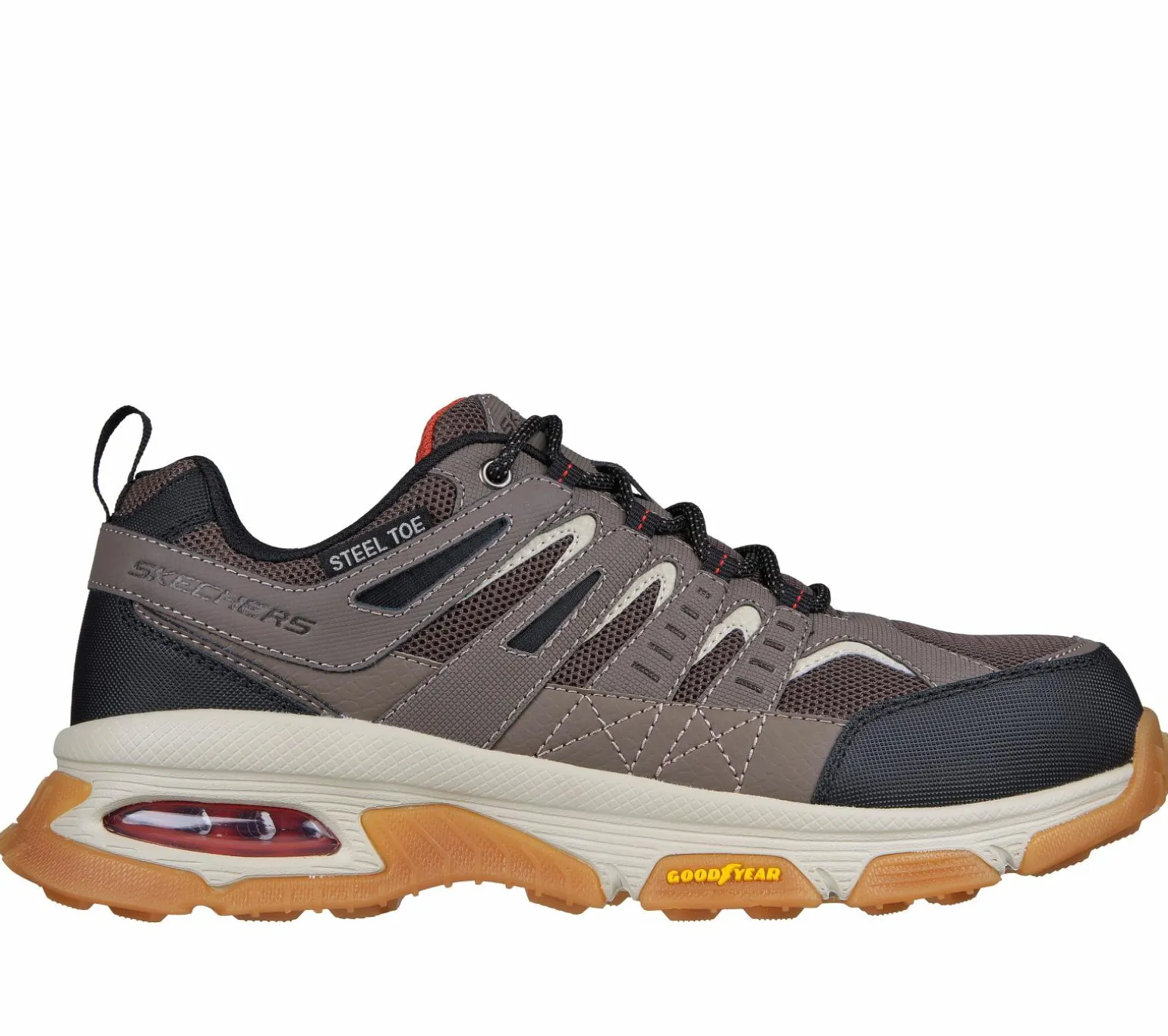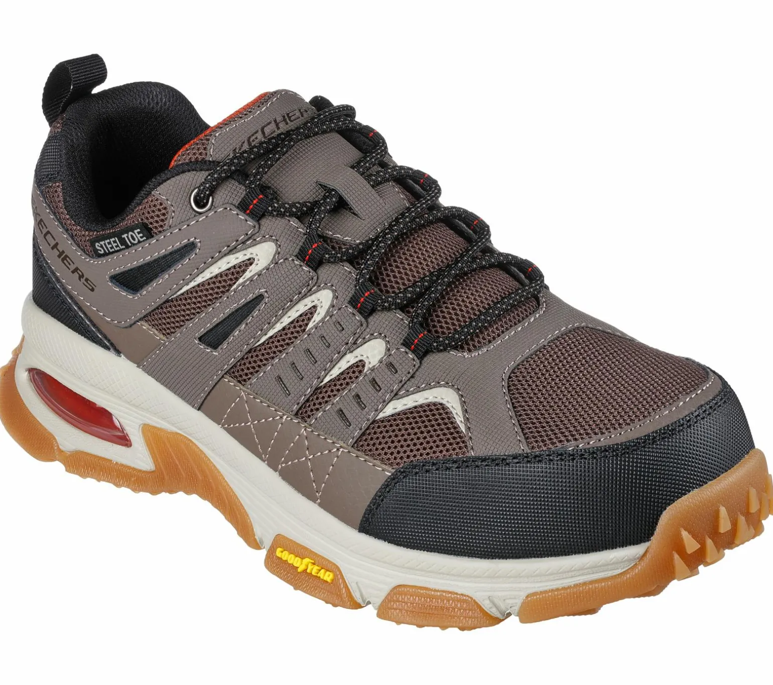 Gear up for your shift in exceptional traction and supportive comfort with Skechers Work: Skech-Air® Envoy ST – Arcket. This lace-up features a water-repellent leather, synthetic and mesh upper with a Skechers Air-Cooled Memory Foam® insole, Skech-Air® visible airbag midsole, and a highly durable Goodyear® Performance Outsole.