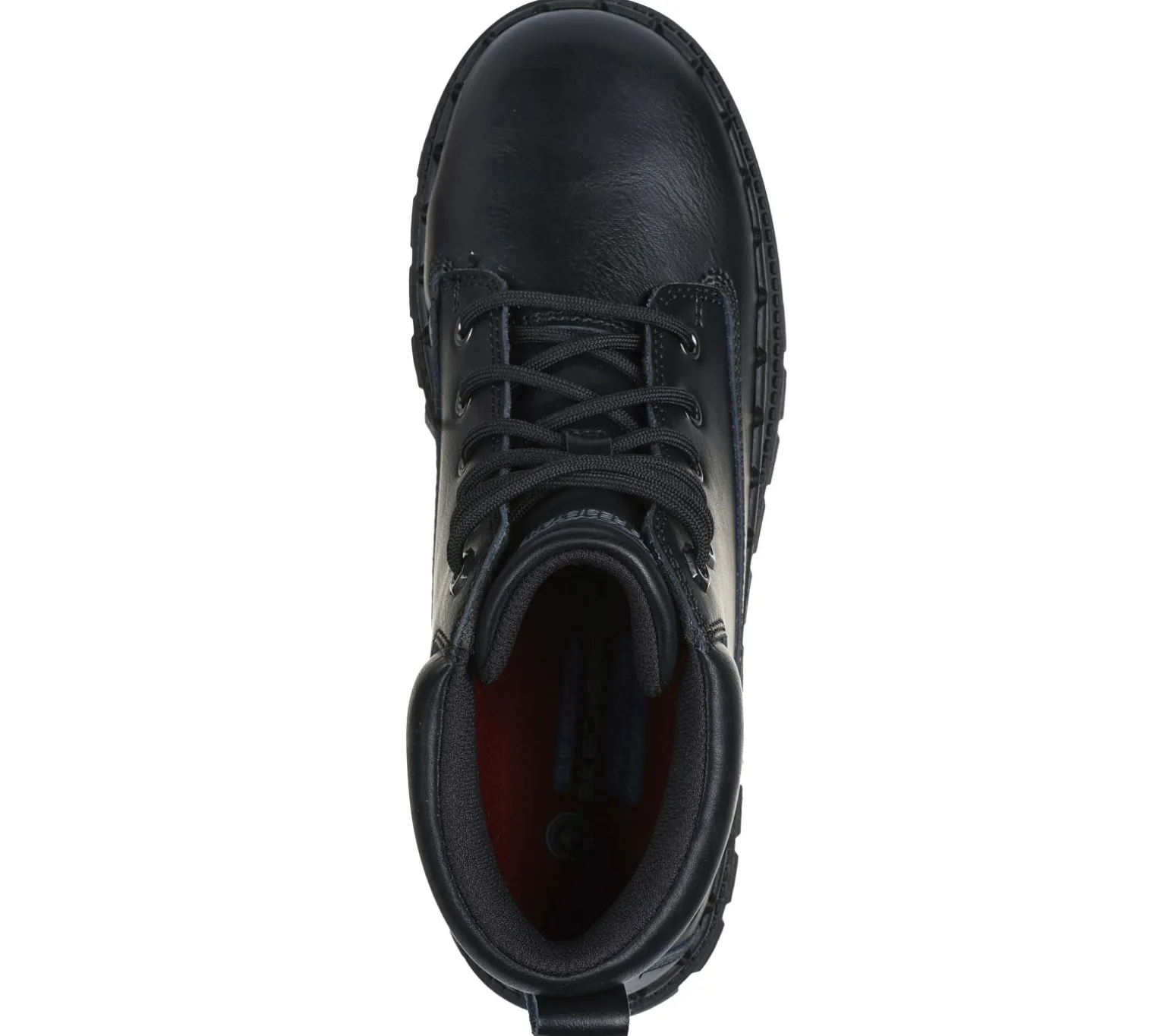 A favorite style arrives in comfort and safety with Skechers Work Relaxed Fit®: Jammers SR – Zesi. This slip-resistant lace-up boot features a leather and synthetic upper with a cushioned Skechers Air-Cooled Memory Foam® insole.