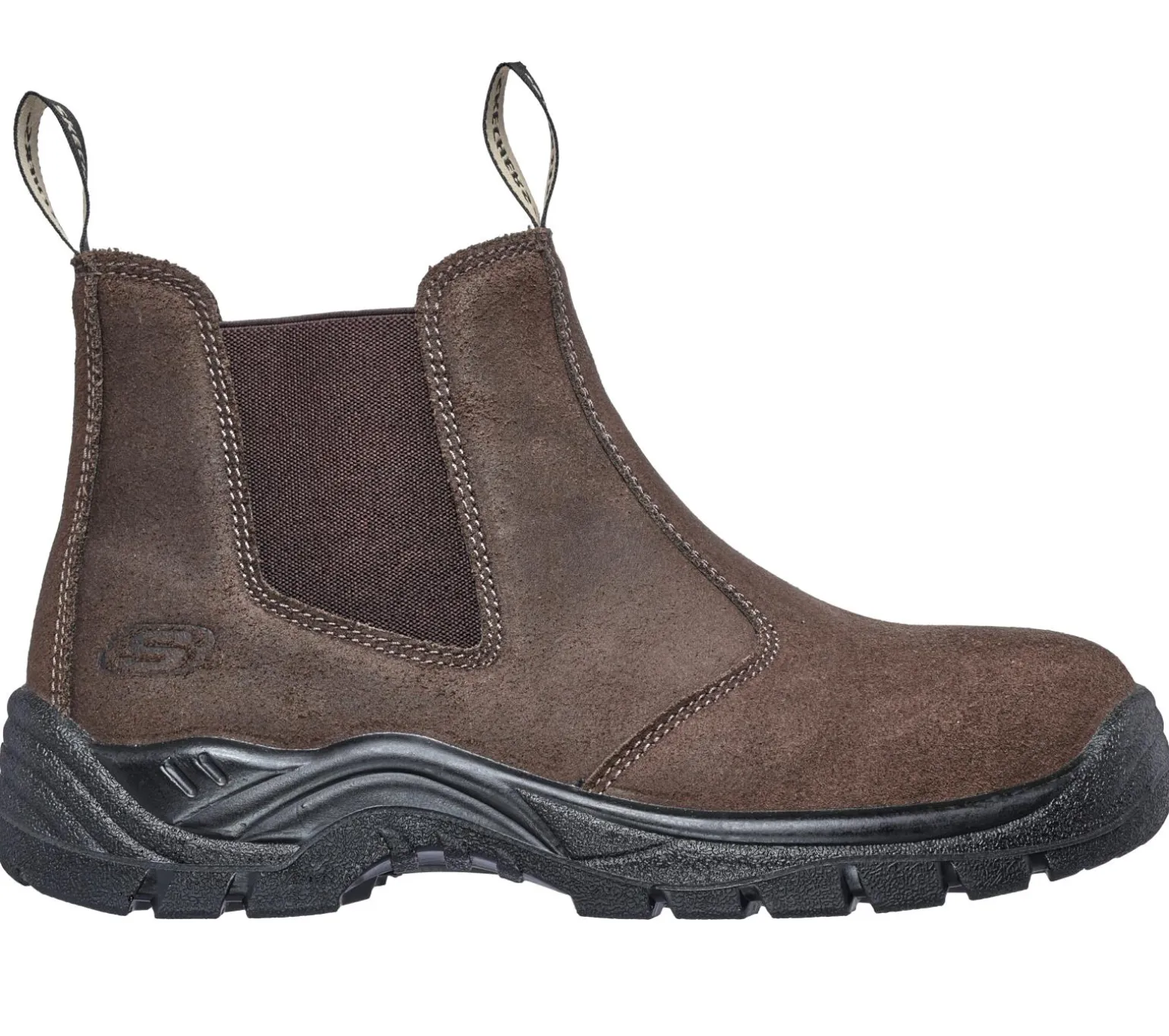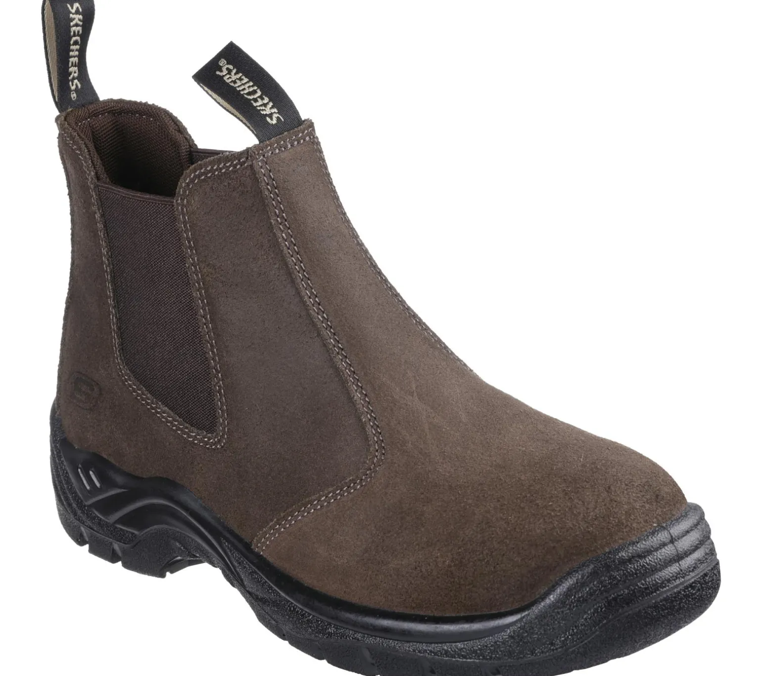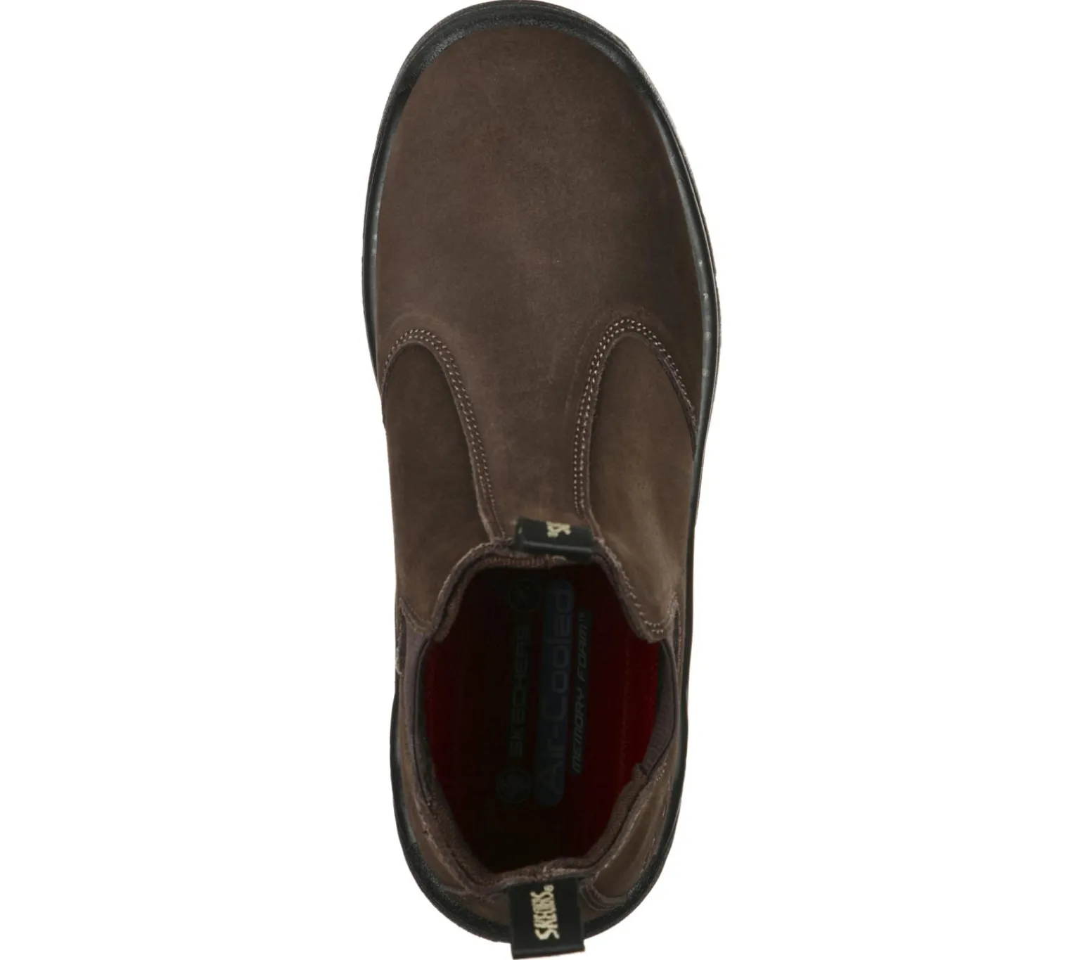 Make staying protected and comfortable all day even simpler wearing Skechers Work: Tapter ST. This slip-on Chelsea ankle boot features a smooth durable oiled suede upper with a steel toe and a cushioned Skechers Air-Cooled Memory Foam® insole.