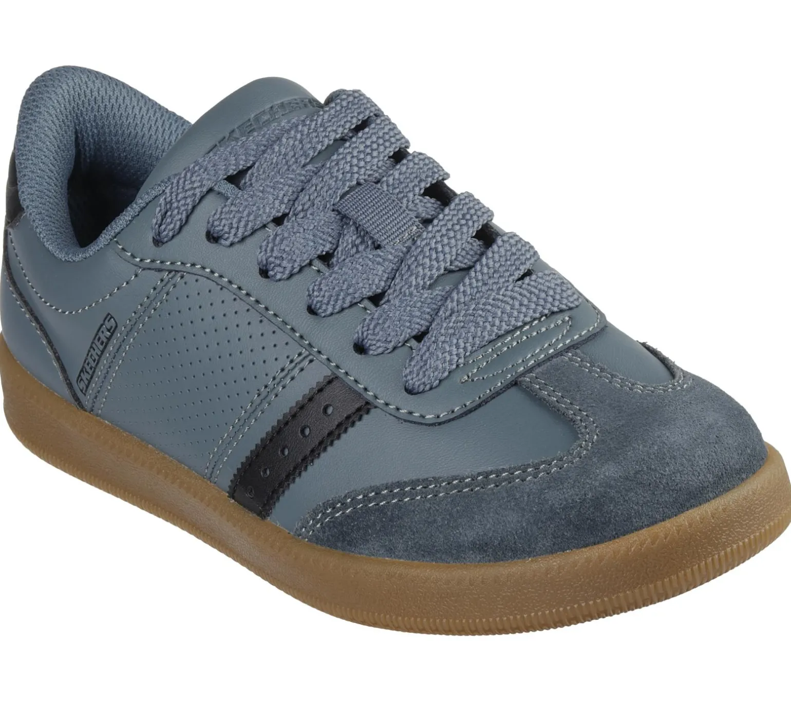 Outfit your kids in throwback flair and style with pure Skechers comfort wearing Skechers Zinger Street. This lace-up retro design features a synthetic and suede overlay upper with stitching detail, a durable rubber outsole, and a cushioned comfort insole.